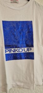 140 – Pinko shirt wit met blauw vlak (0724meg12)