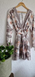 M – Zomers jurkje lange mouw beige bloemen (0125kel2)