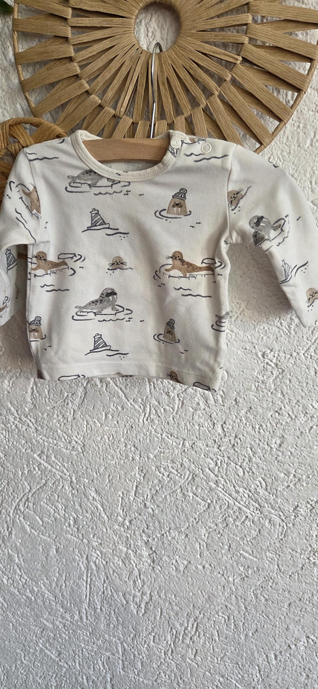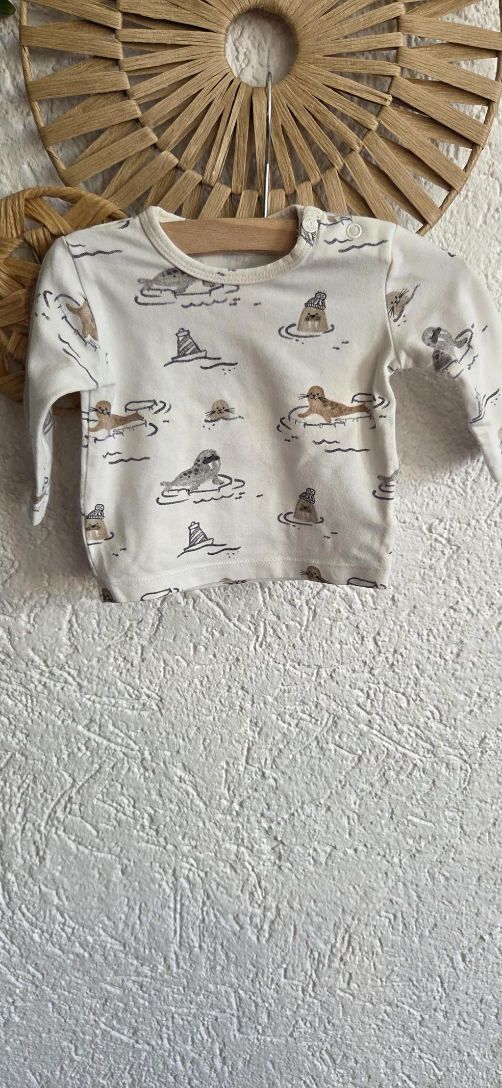 086 – Pantalon met streepjes shirt beige (1125gro)