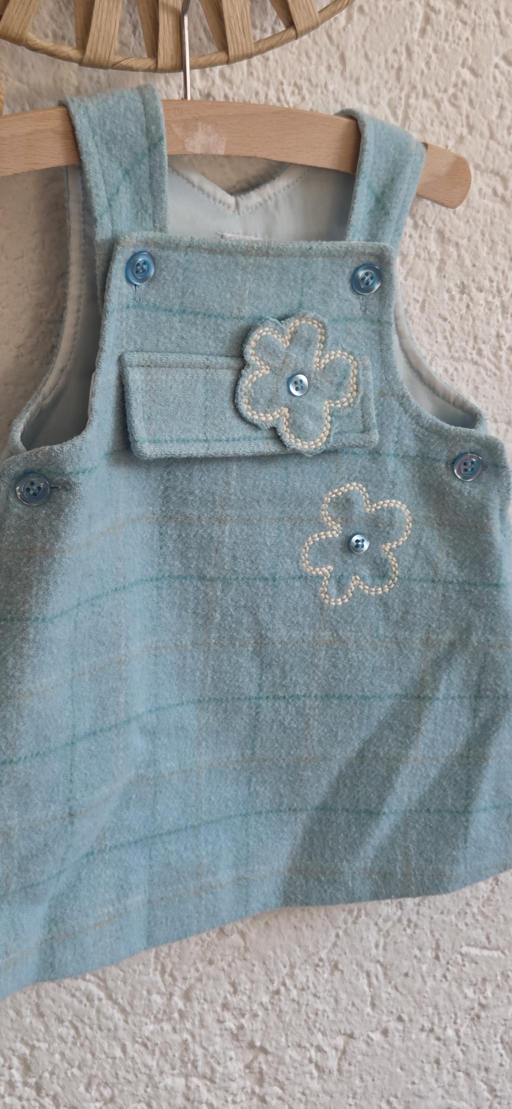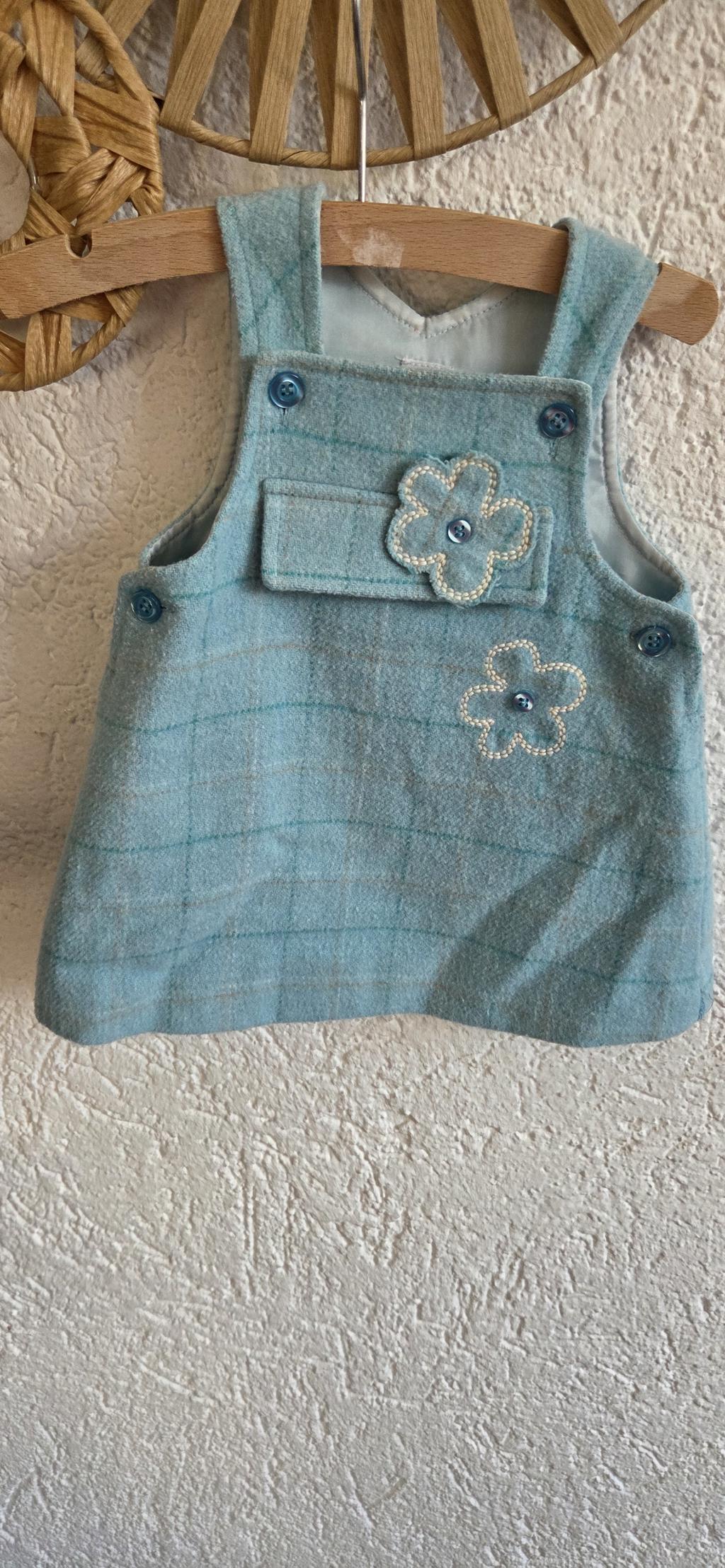 • Lief jurkje in aqua blauw ruit met bloem.