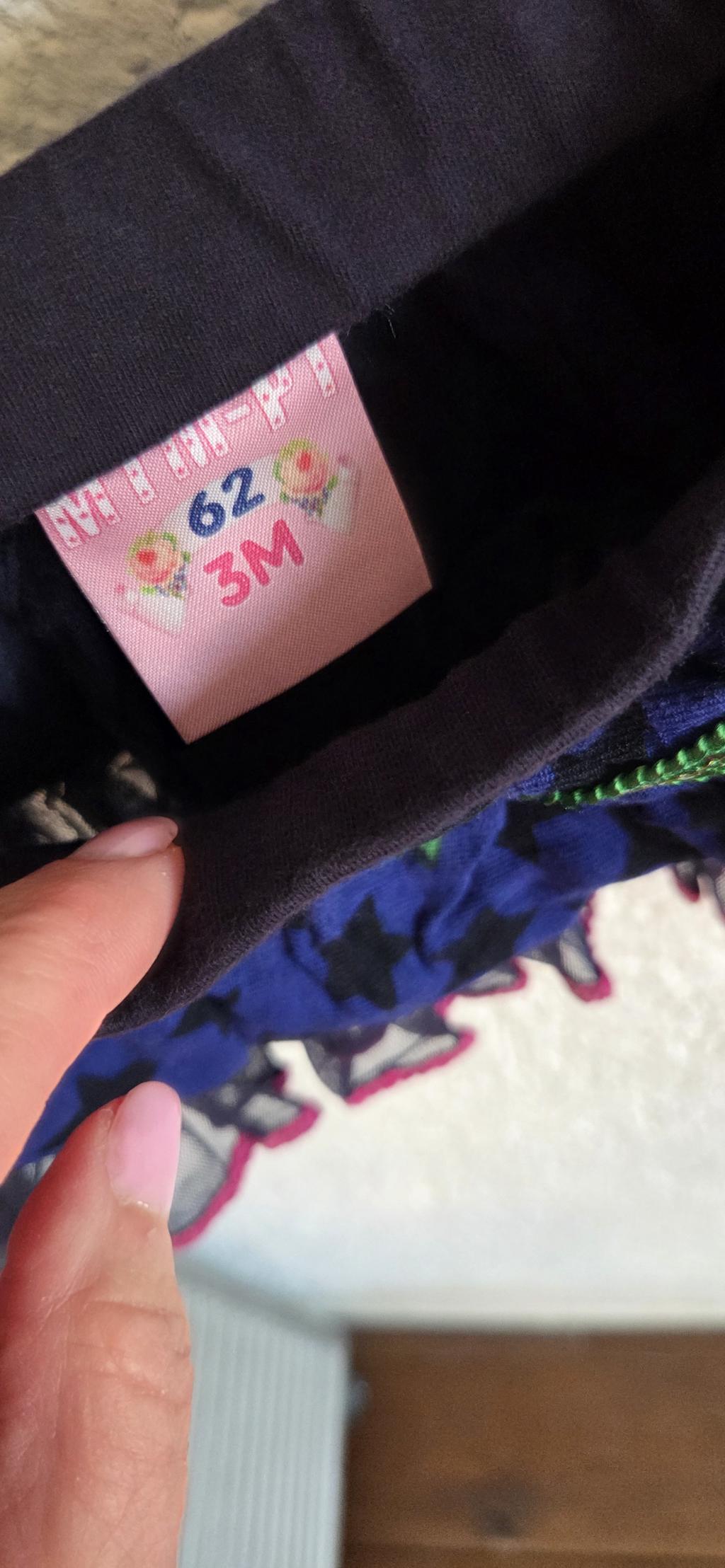 Schitterend vest in poederroze met blauw en wit.