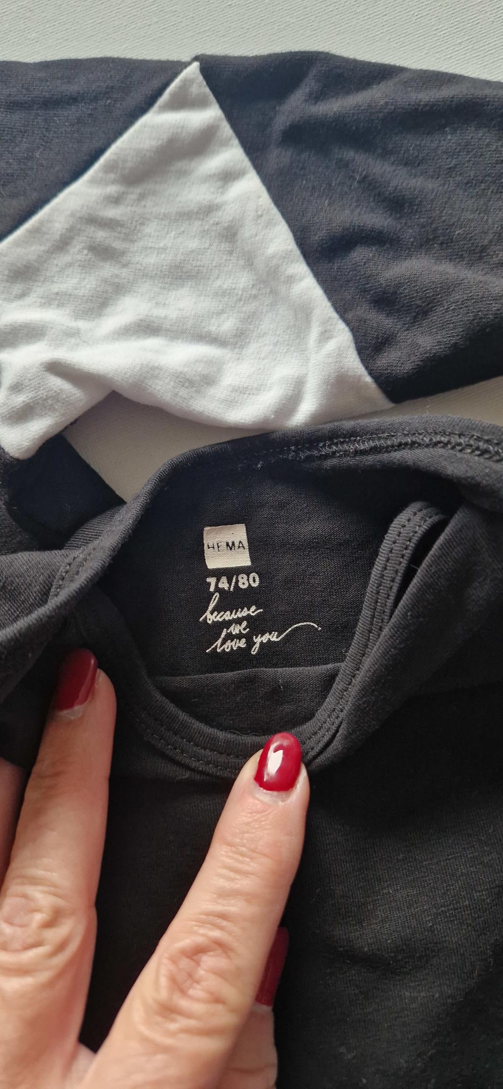 Bijpassend geleverd zwarte romper met lange mouw van de Hema.