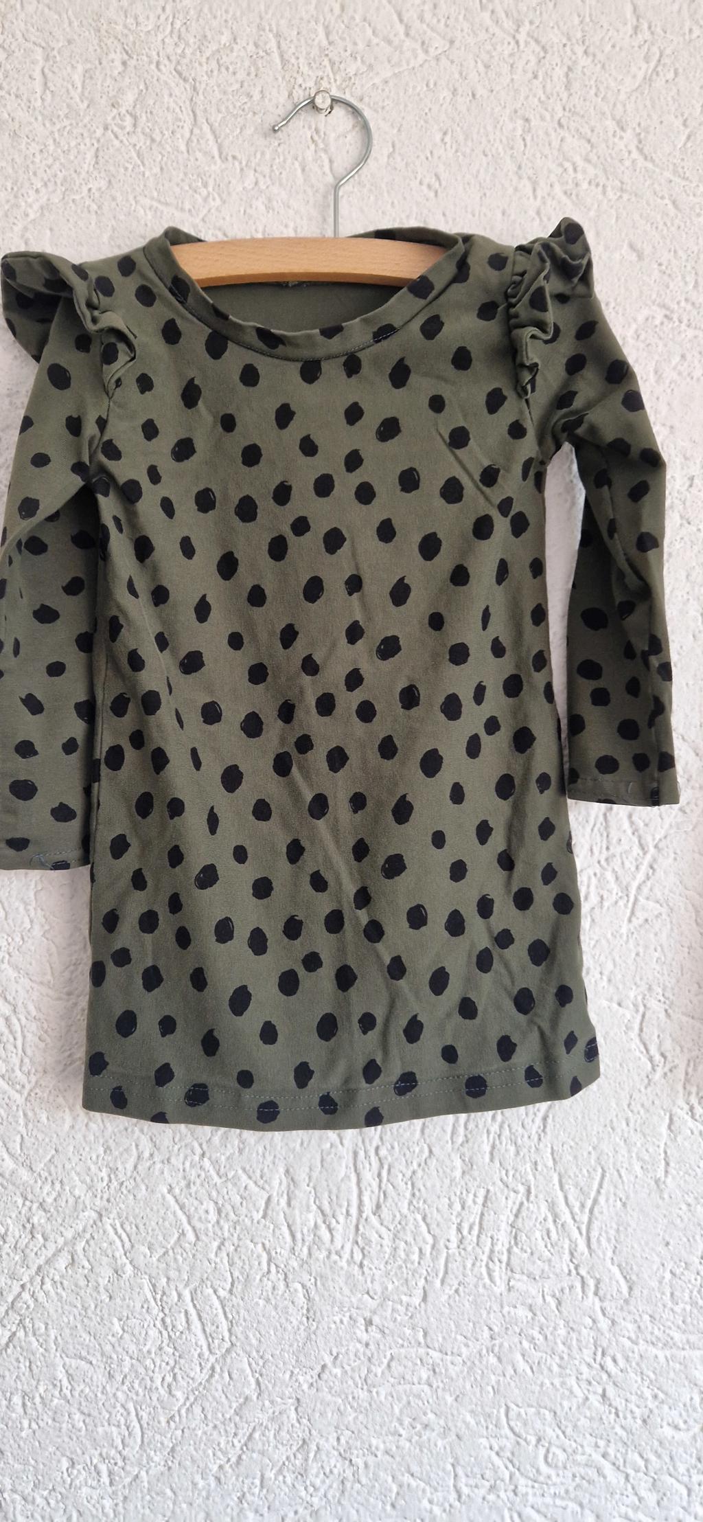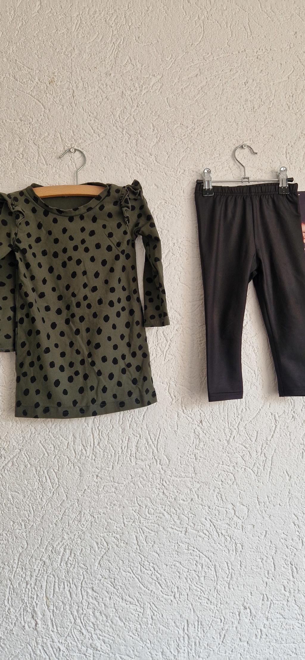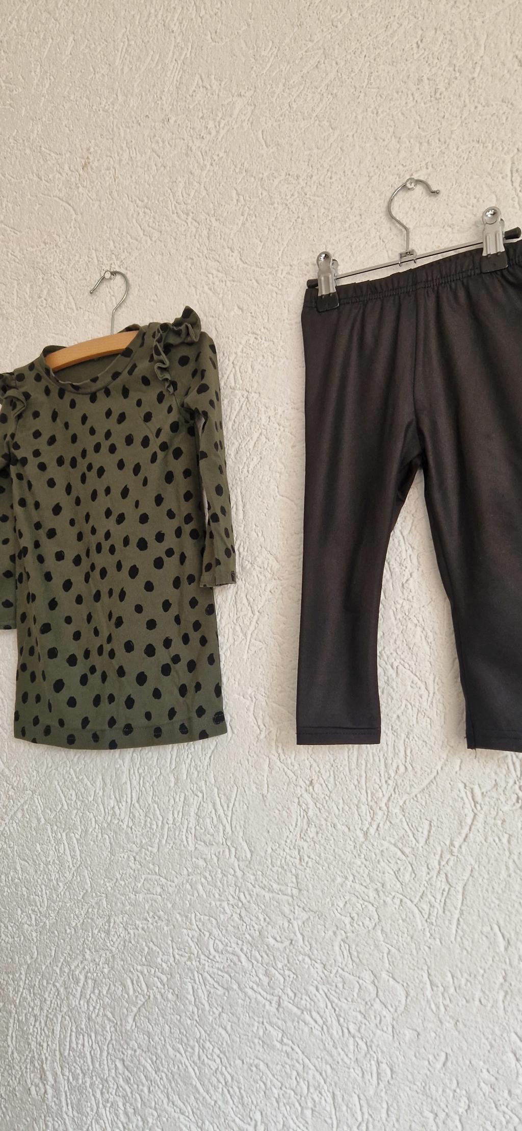 Lief setje, jurkje groen met stippen en zwart broekje.
