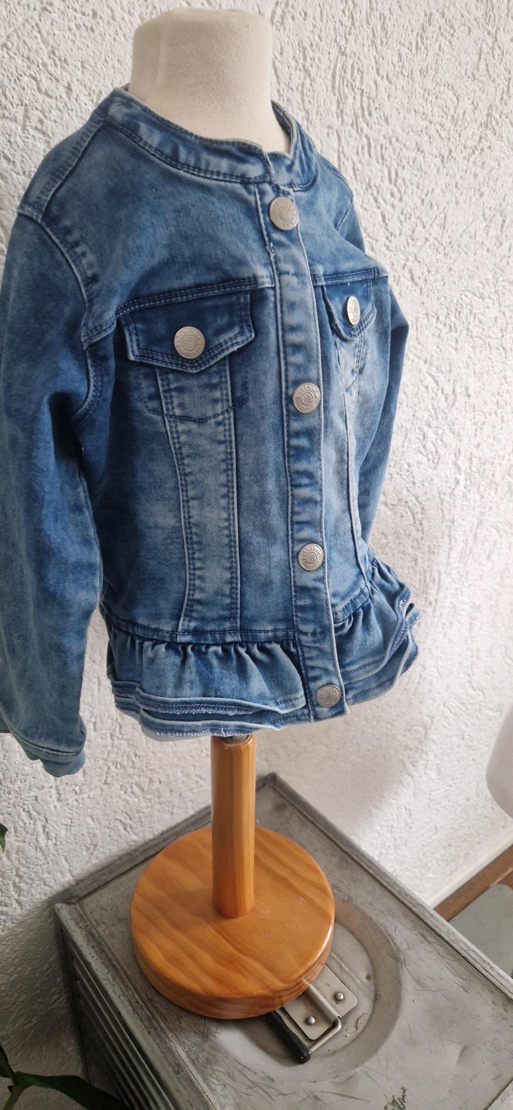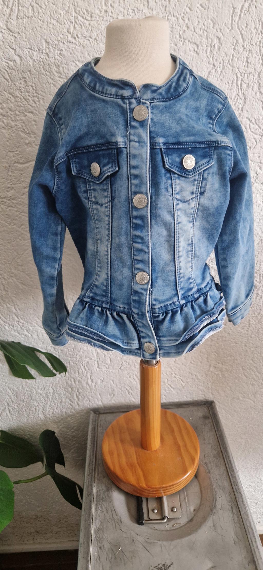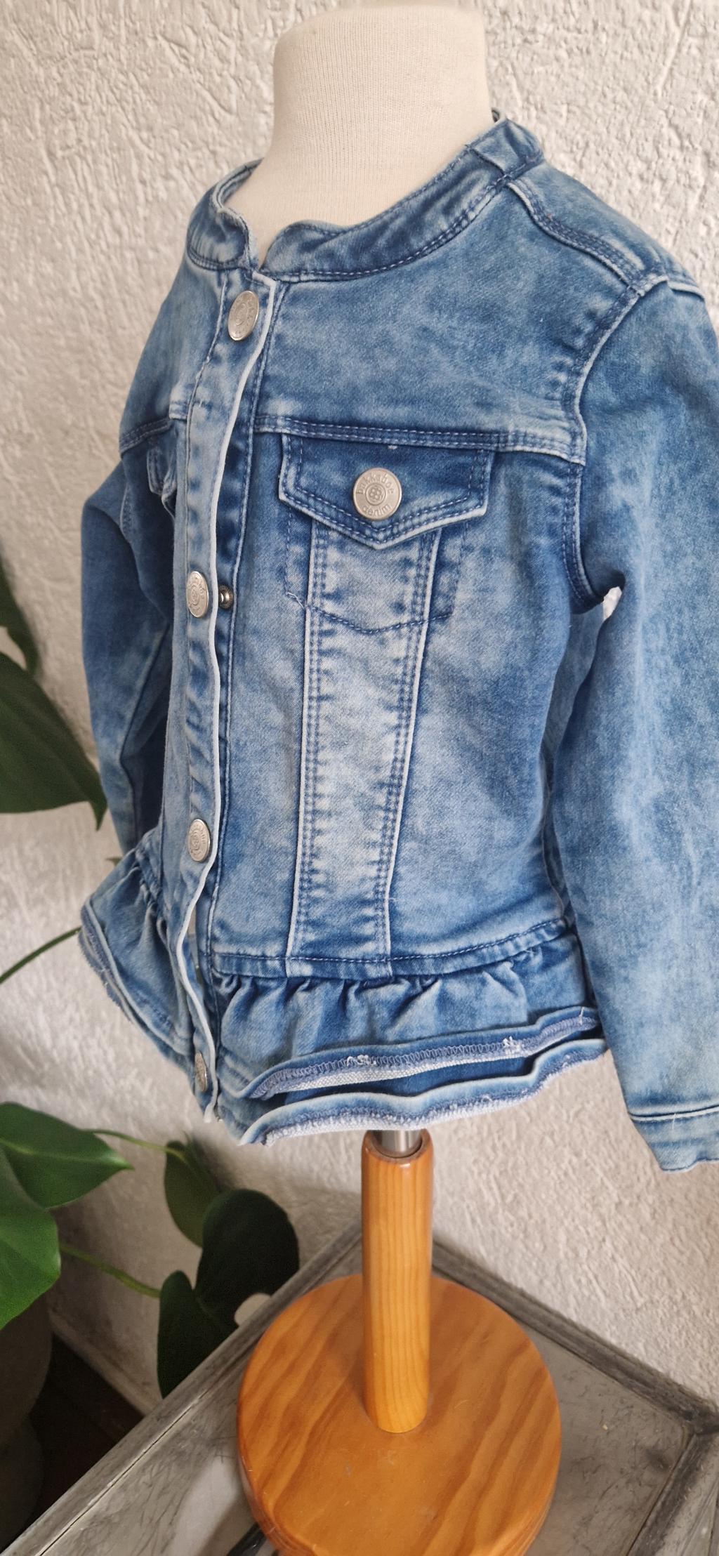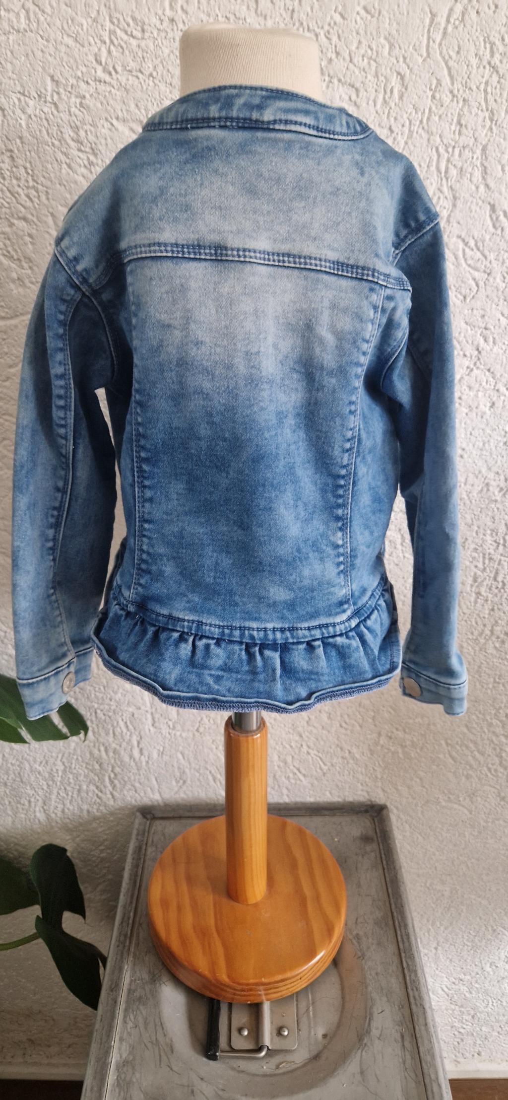 Leuke spijkerjas met drukknopen en roezel band.