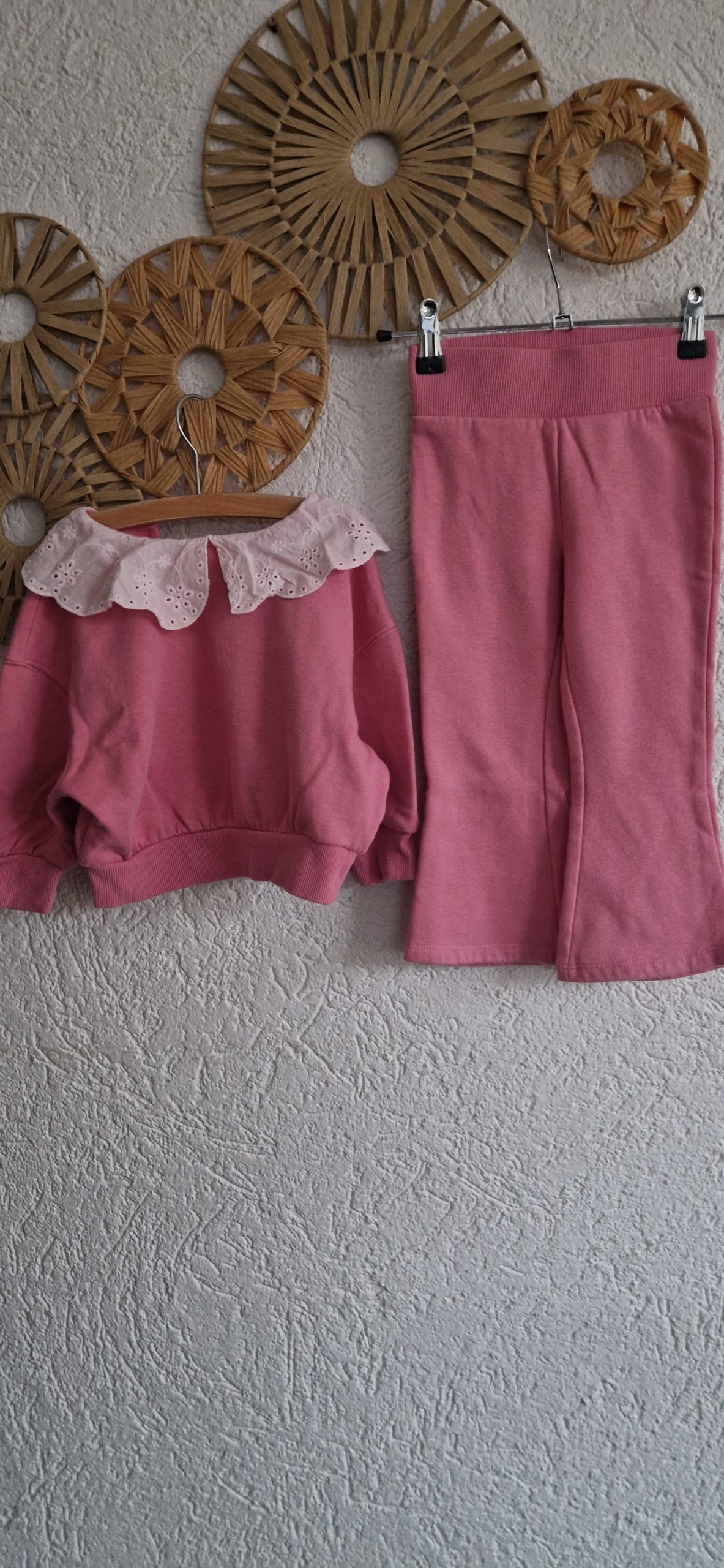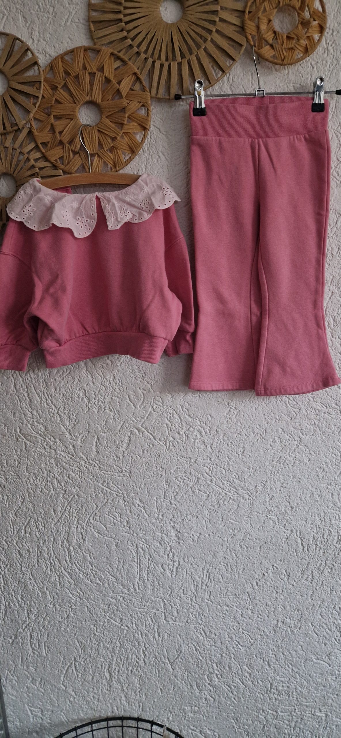 Schattig pak met flared pijpje en kraagje aan de top.