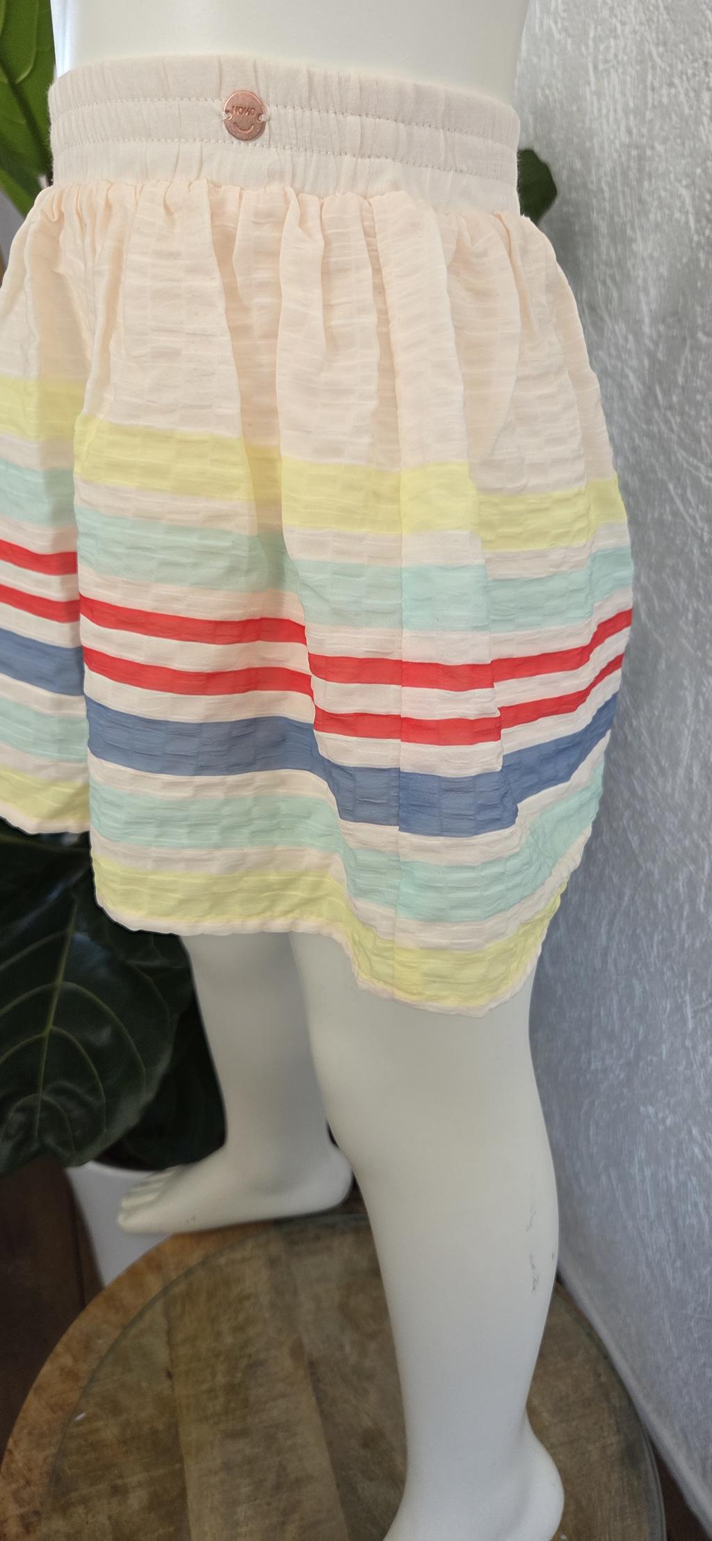 Prachtig rokje in kleurtjes en lieve pastels in combinatie met roomkleurige basis.