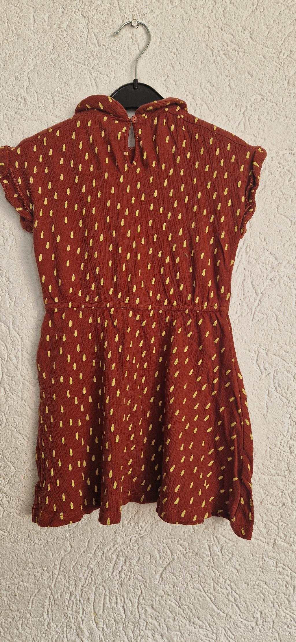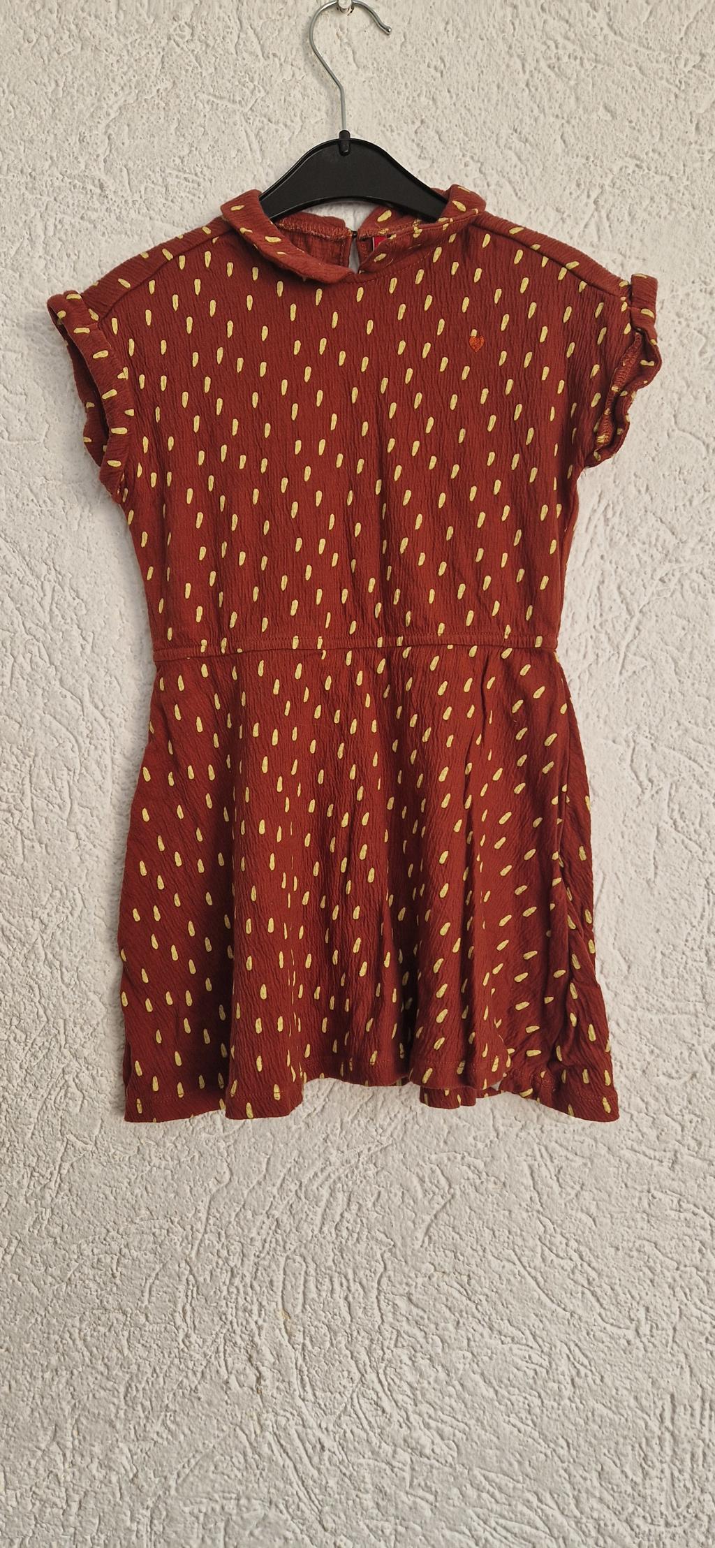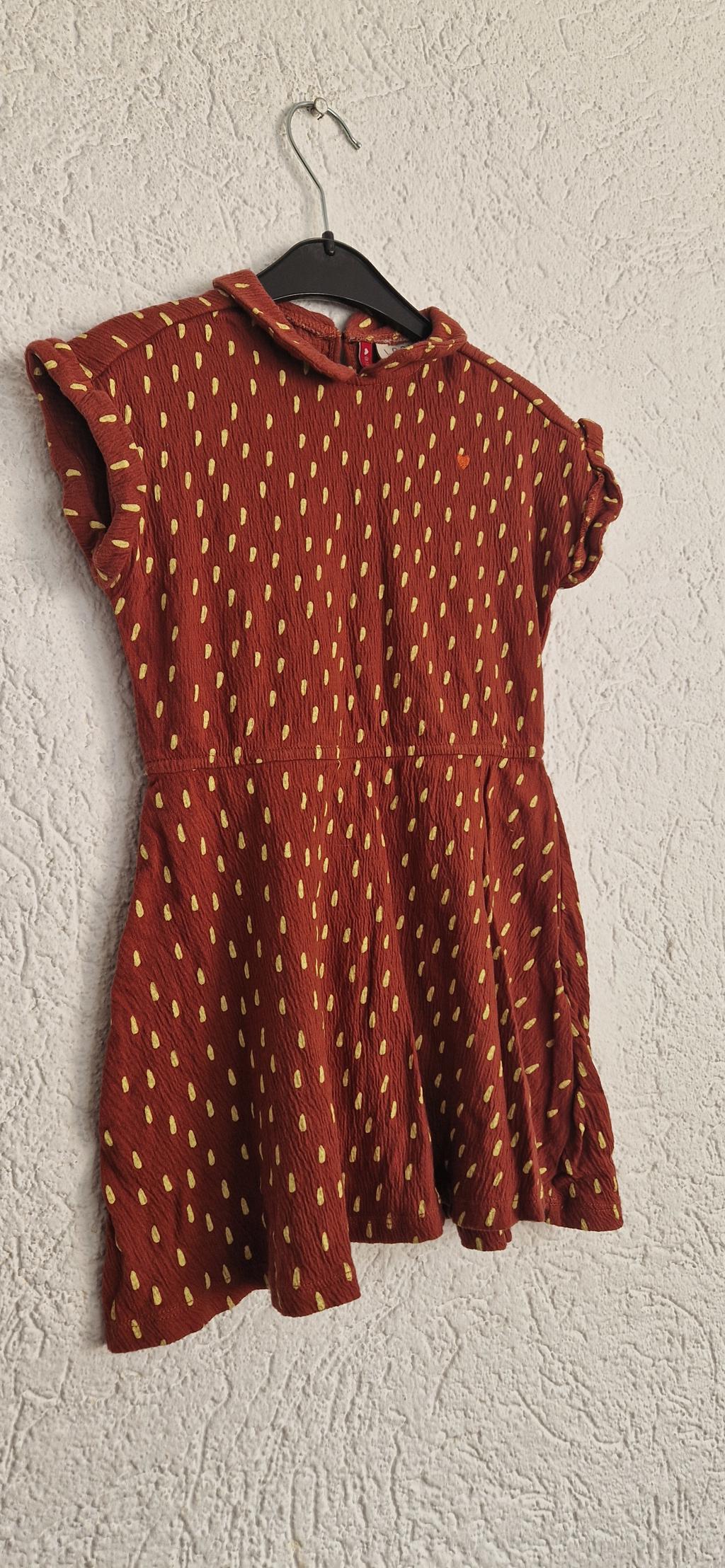 Superlief jurkje in bruin met gele vlokjes.