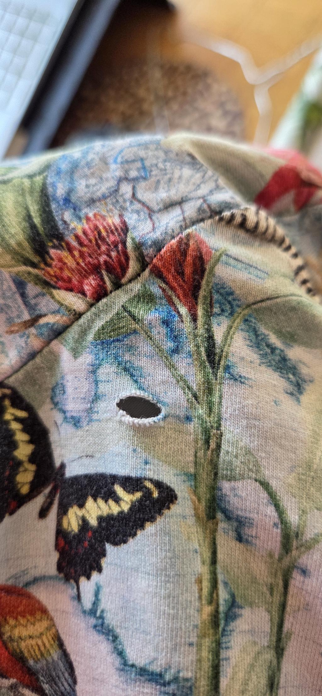 De jurk heeft 2 gaatjes maar voor een klein prijsje mogelijk te repareren.