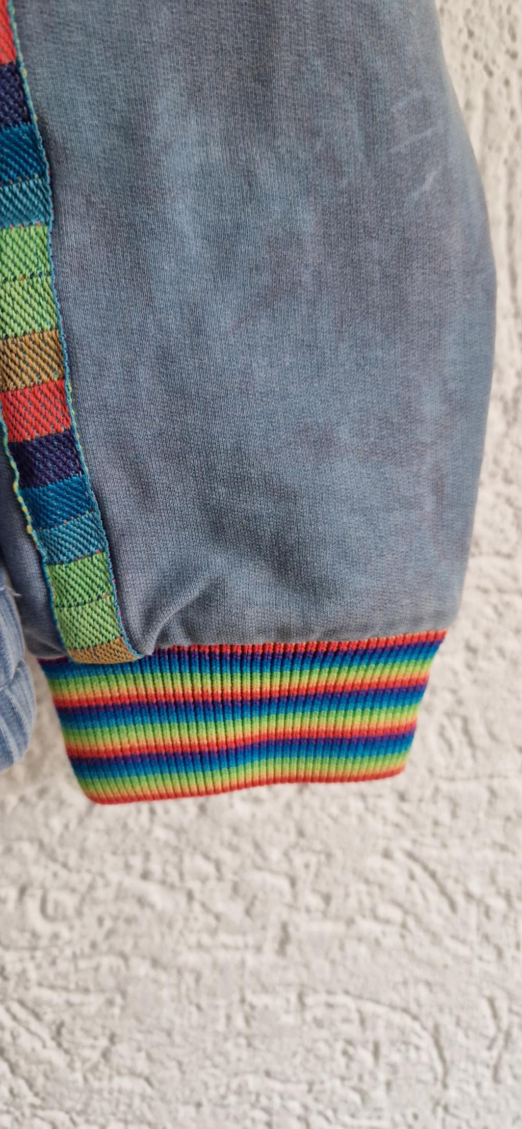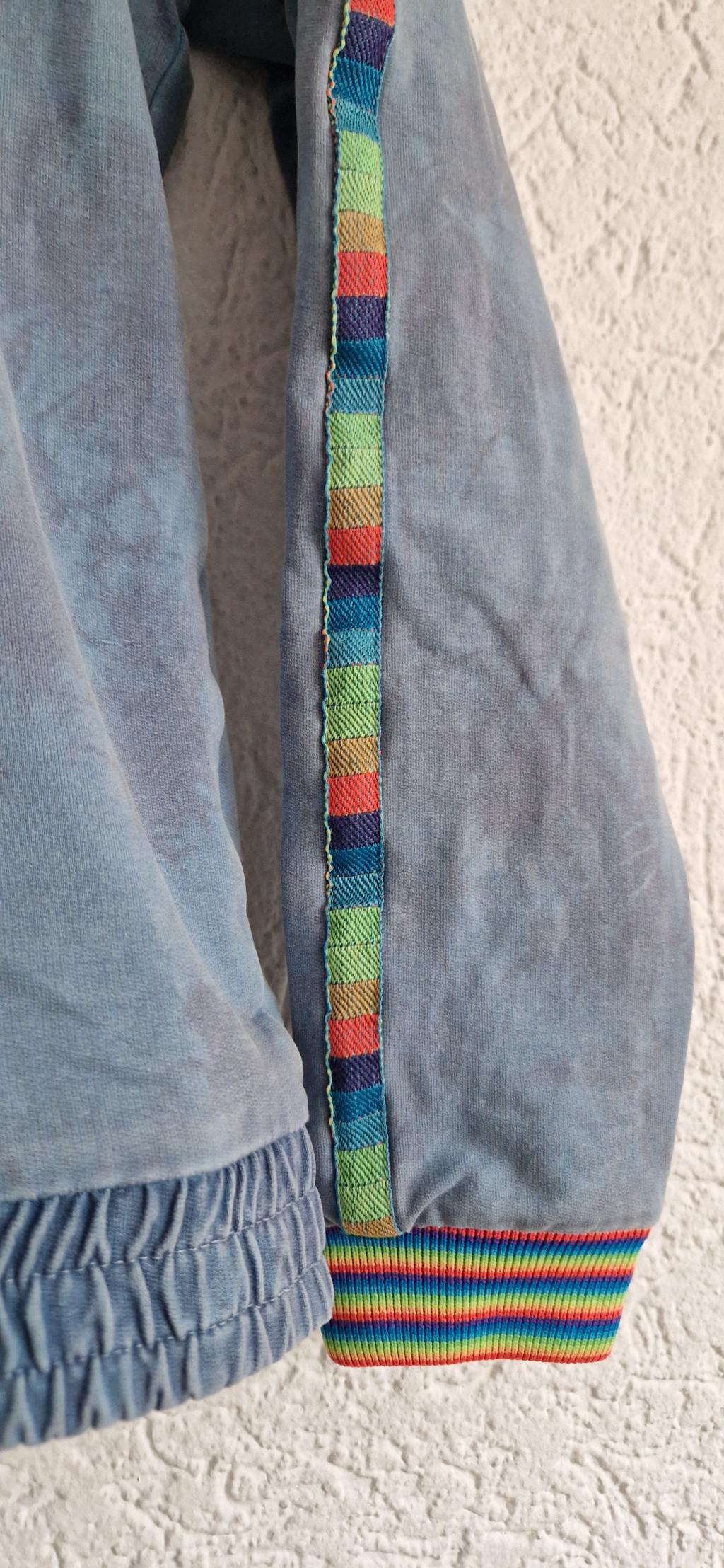 Vrolijk denim jack met vlinders en franje.