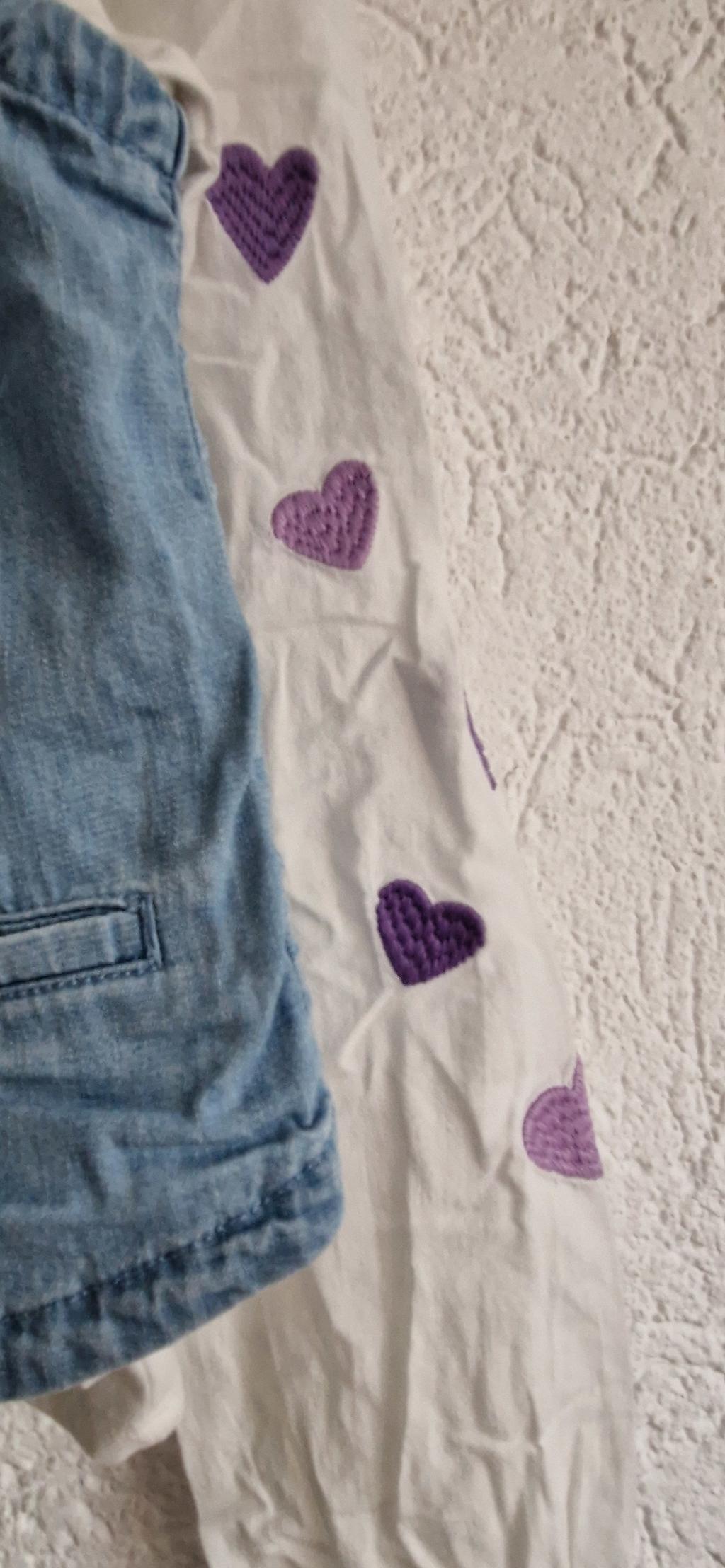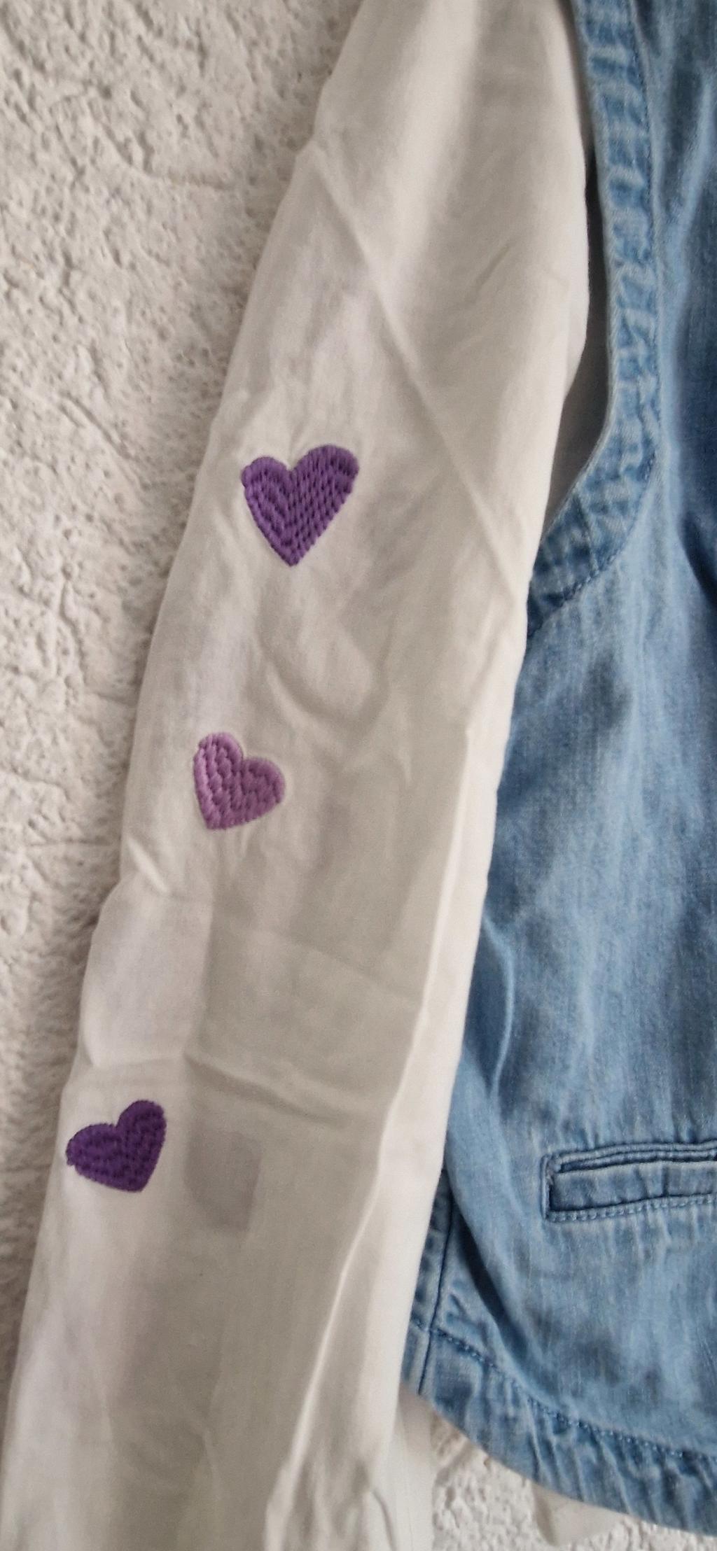 Superleuke set gemaakt van een tuniek in wit met hartjes. Met denim gilet leuke combi.