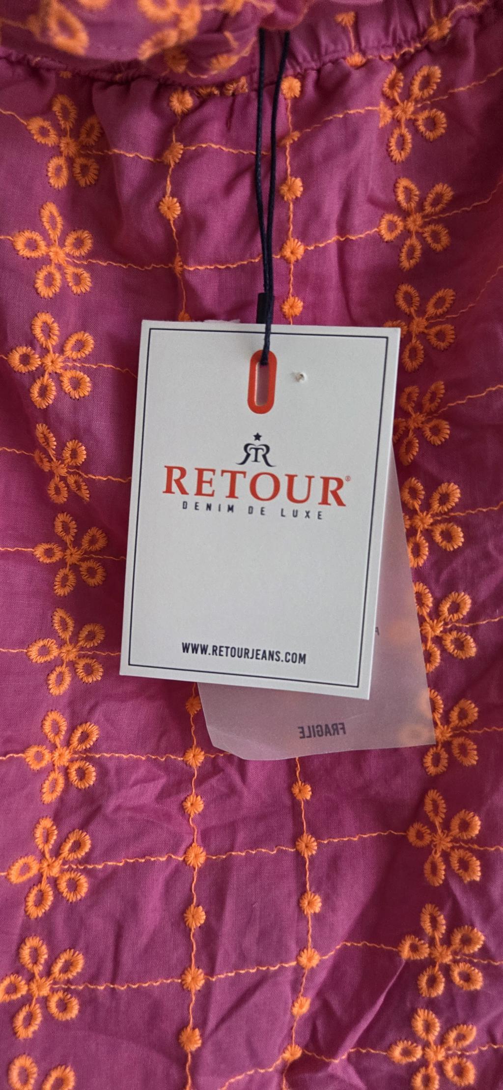 - Een skort uit de zomercollectie van Retour Jeans met vastgestikte overslag voor. Het model heeft gedessineerd elastiek in de taille met vastgestikt strikceintuur en heeft steekzakken.