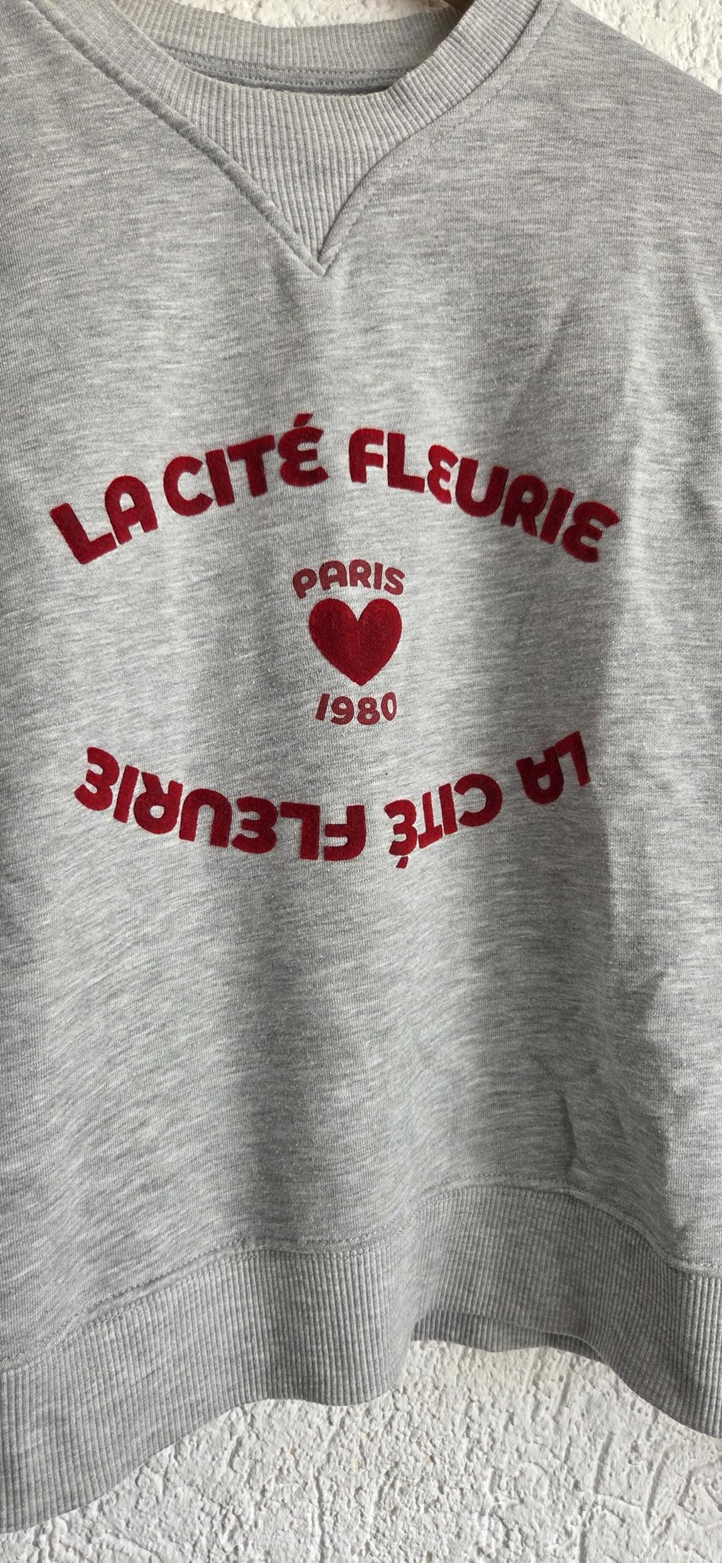 164 - Zara sweater grijs print in rood (0426mi) aantal