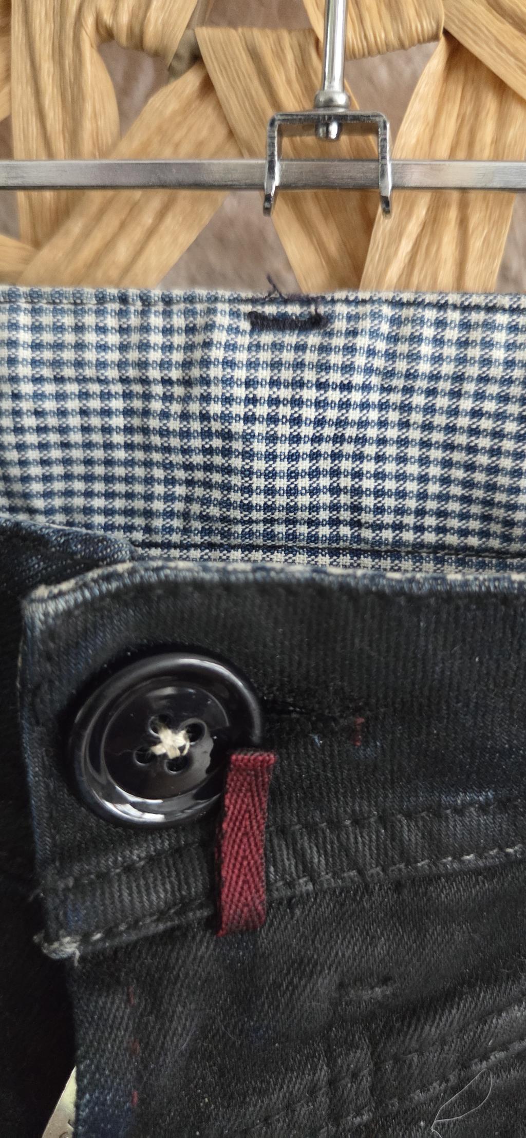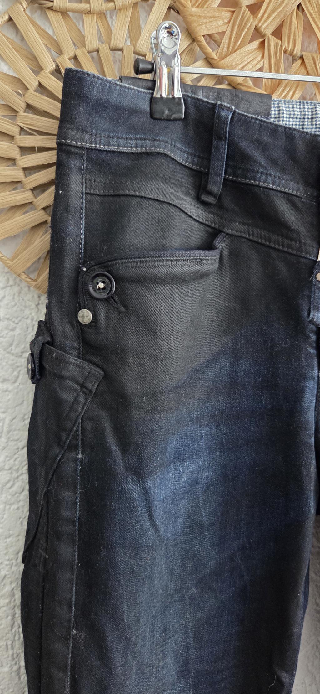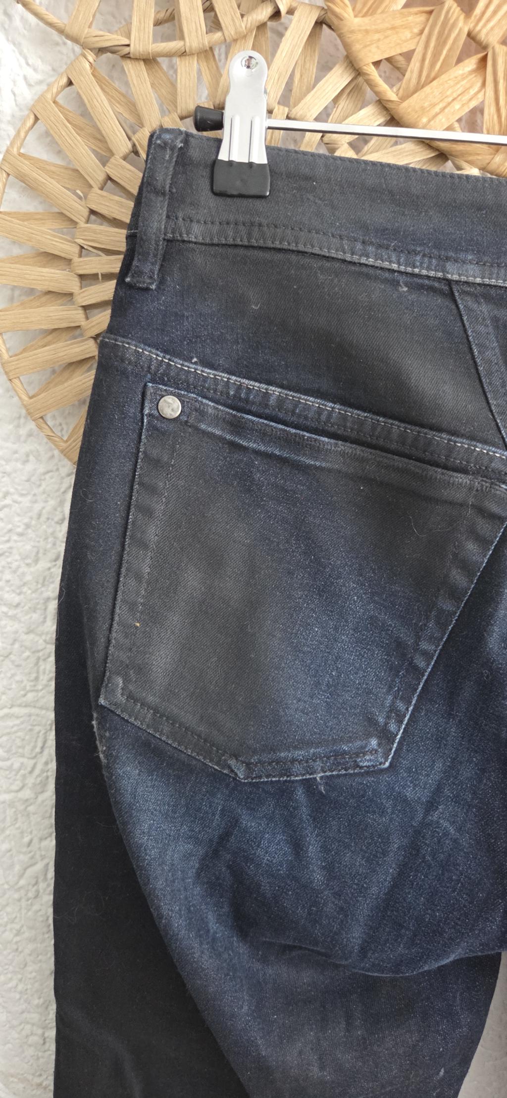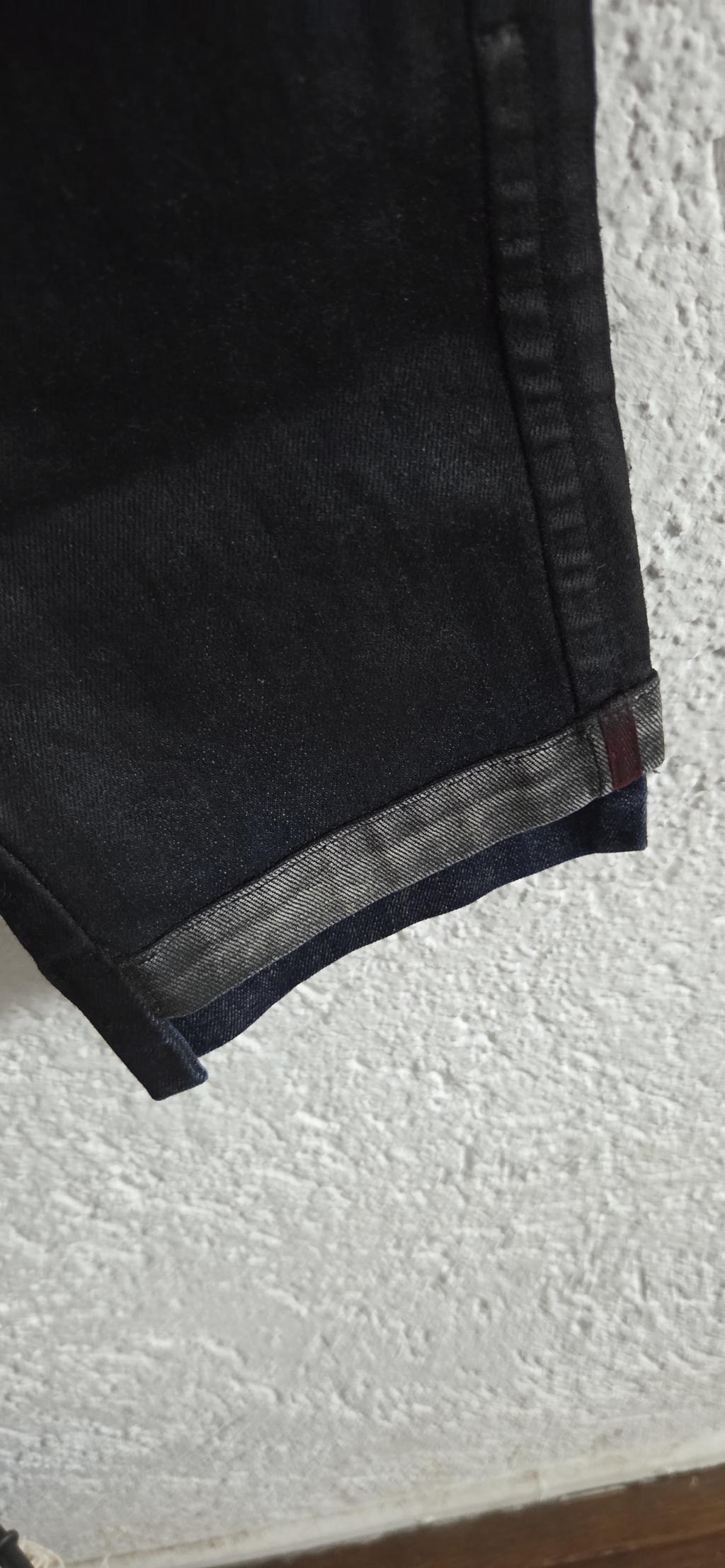 Bijzondere jeans in zwart met blauw. De stof is een combinatie van sky en jeans.