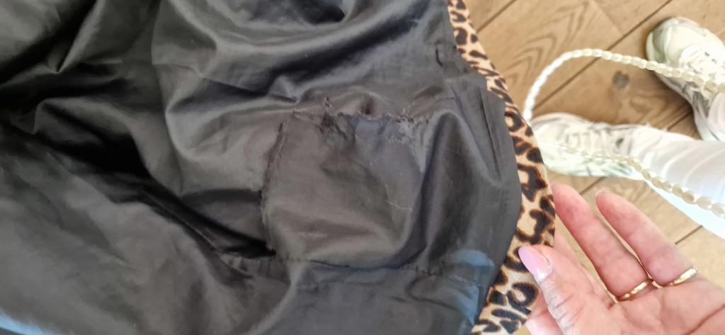 In de voering zit een scheurtje wat gemakkelijk gerepareerd kan worden. In prijs rekening mee gehouden. Buitenkant is uitstekend.