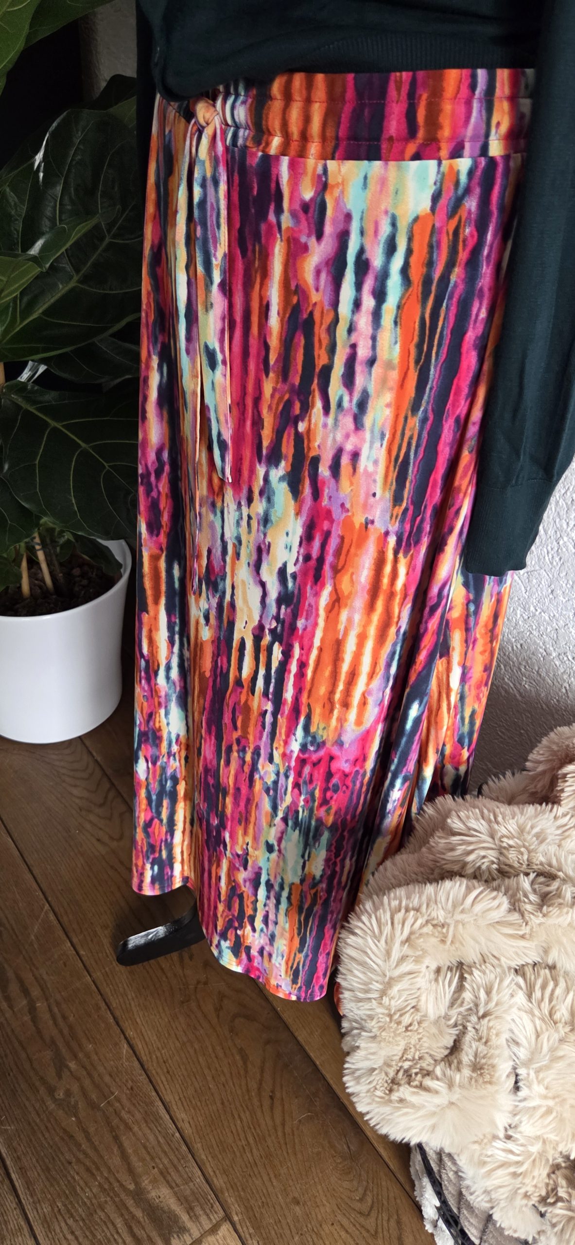 Geweldige mooie rok in kleurtjes en met tunnelkoord in de taille.