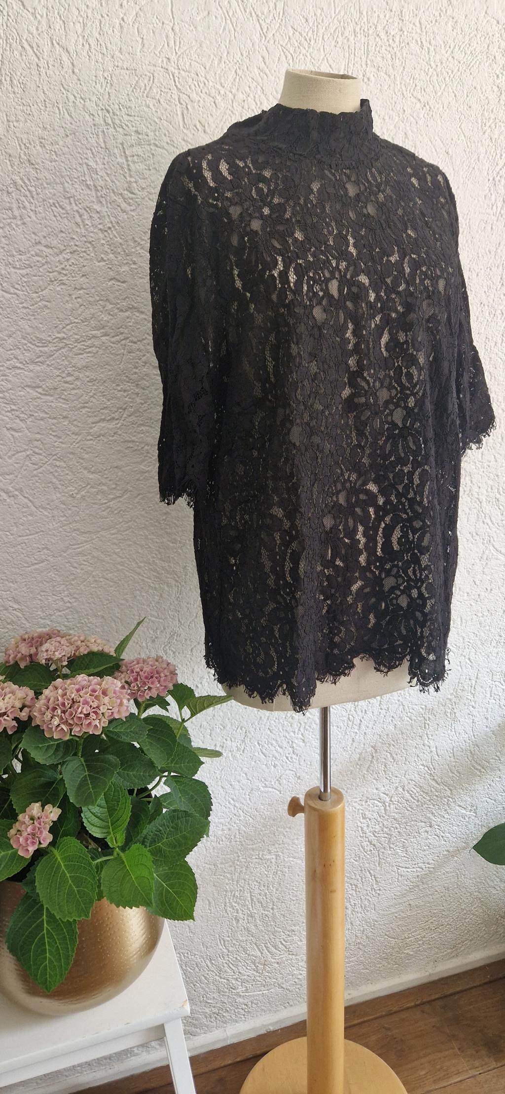 Prachtige top in zwart kant met half mouwtje.