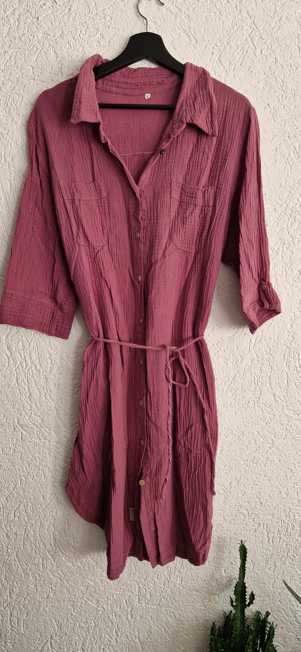 L - Wafeltjeskatoen jurk roze/paarsig (1025han) aantal