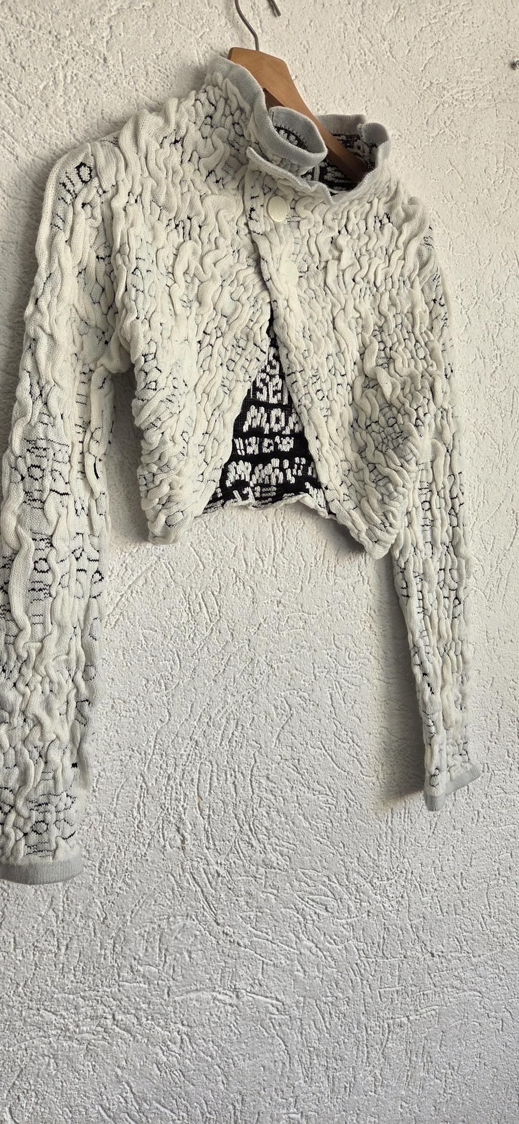 Mooi en lief korter vestje met lange mouw en knopen.
