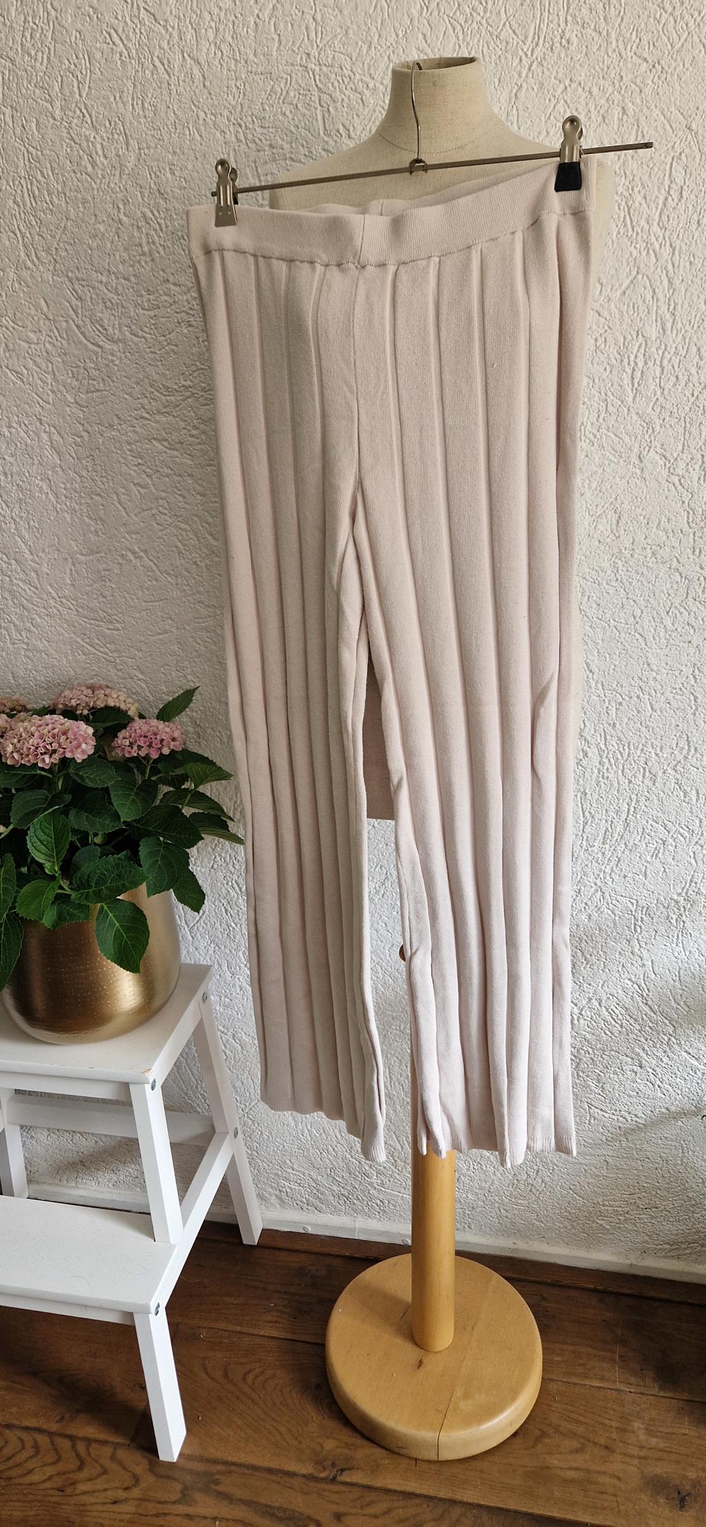 M -H&M broek beige relaxed. (0226re)