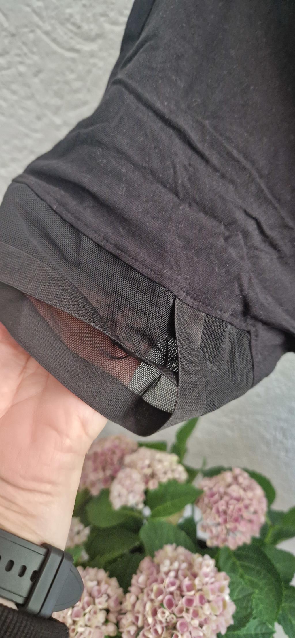 Fijne ochtendjas in zwart. Ideaal met ceintuur. Leuk transparant detail aan het mouwtje.