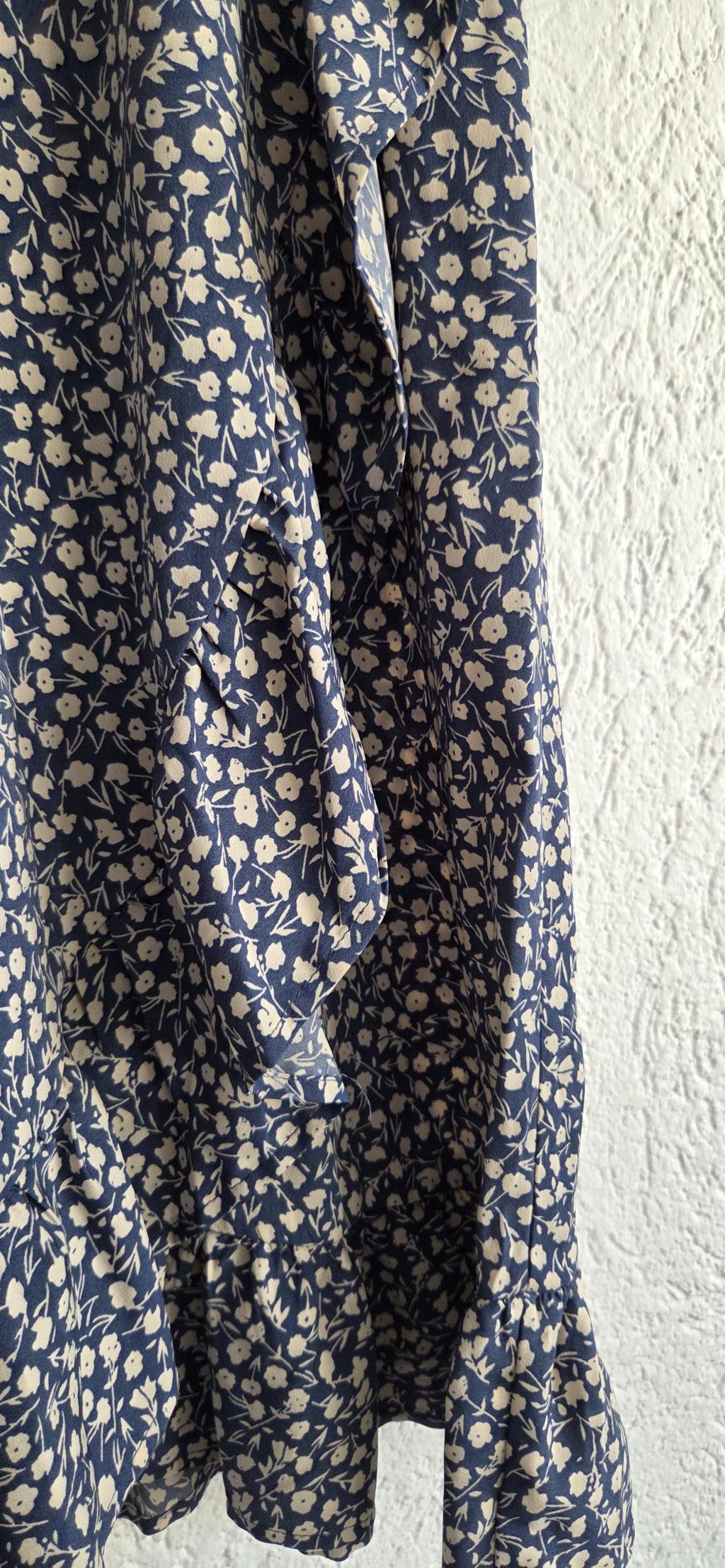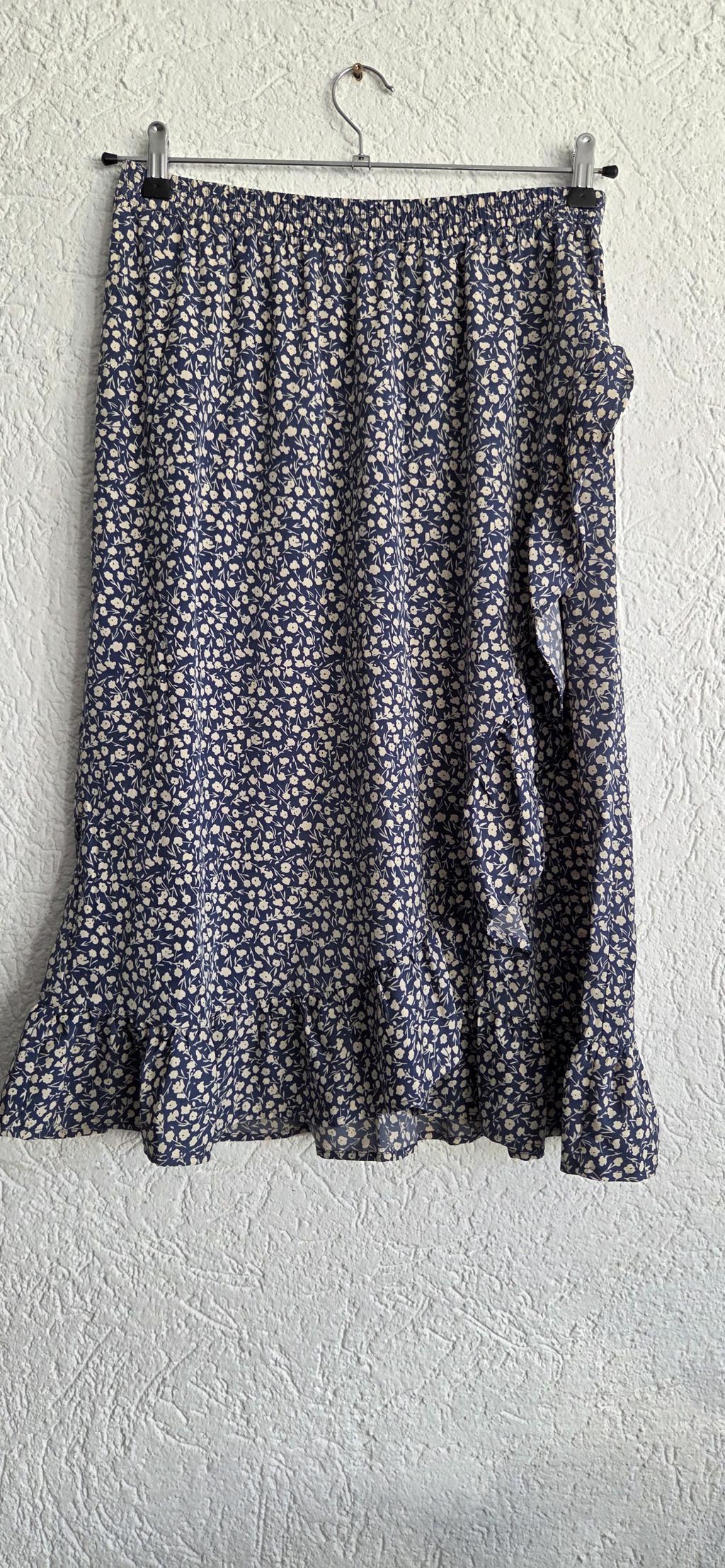 Mooie rok in blauw met lichte bloementjes.