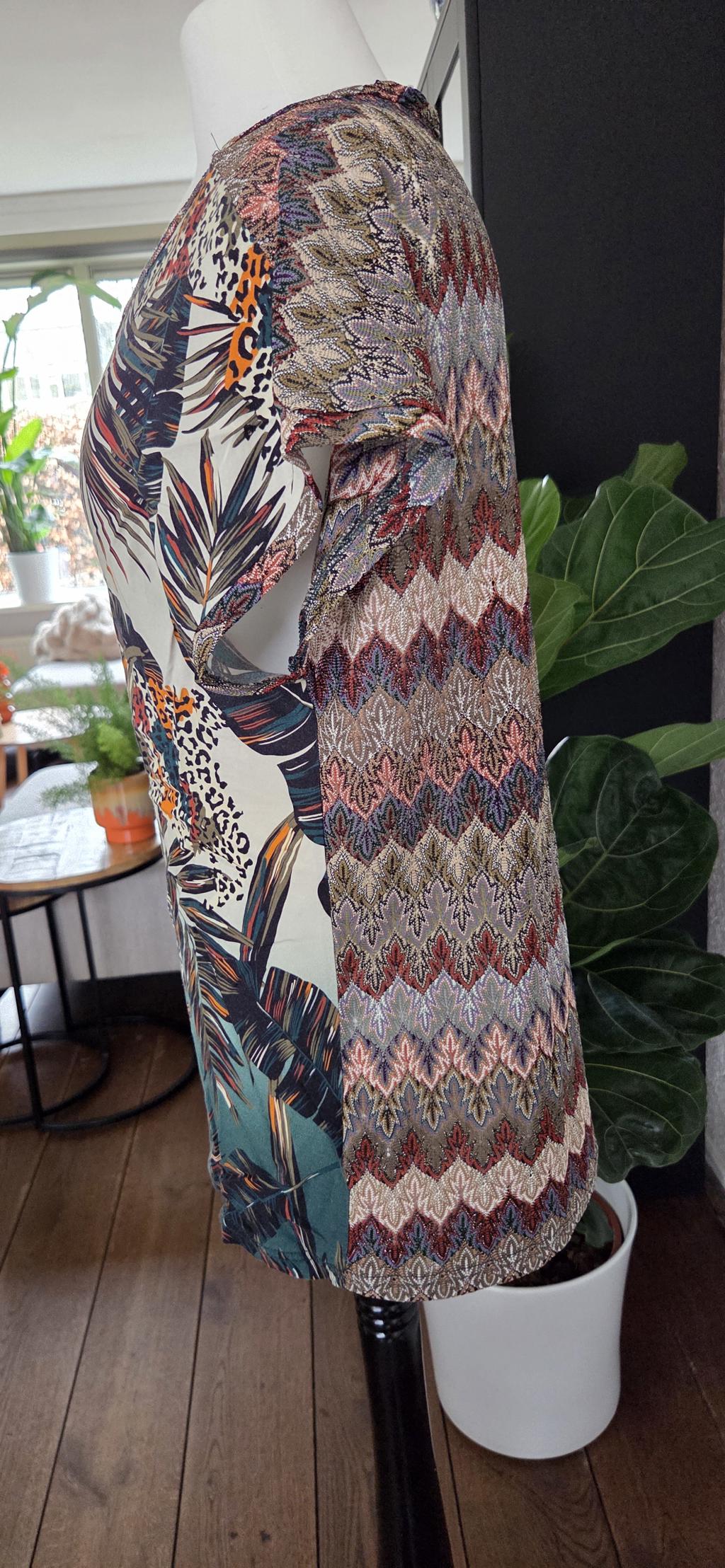 Mooie tuniek met printjes. Achterkant variatie in kleur en stof.