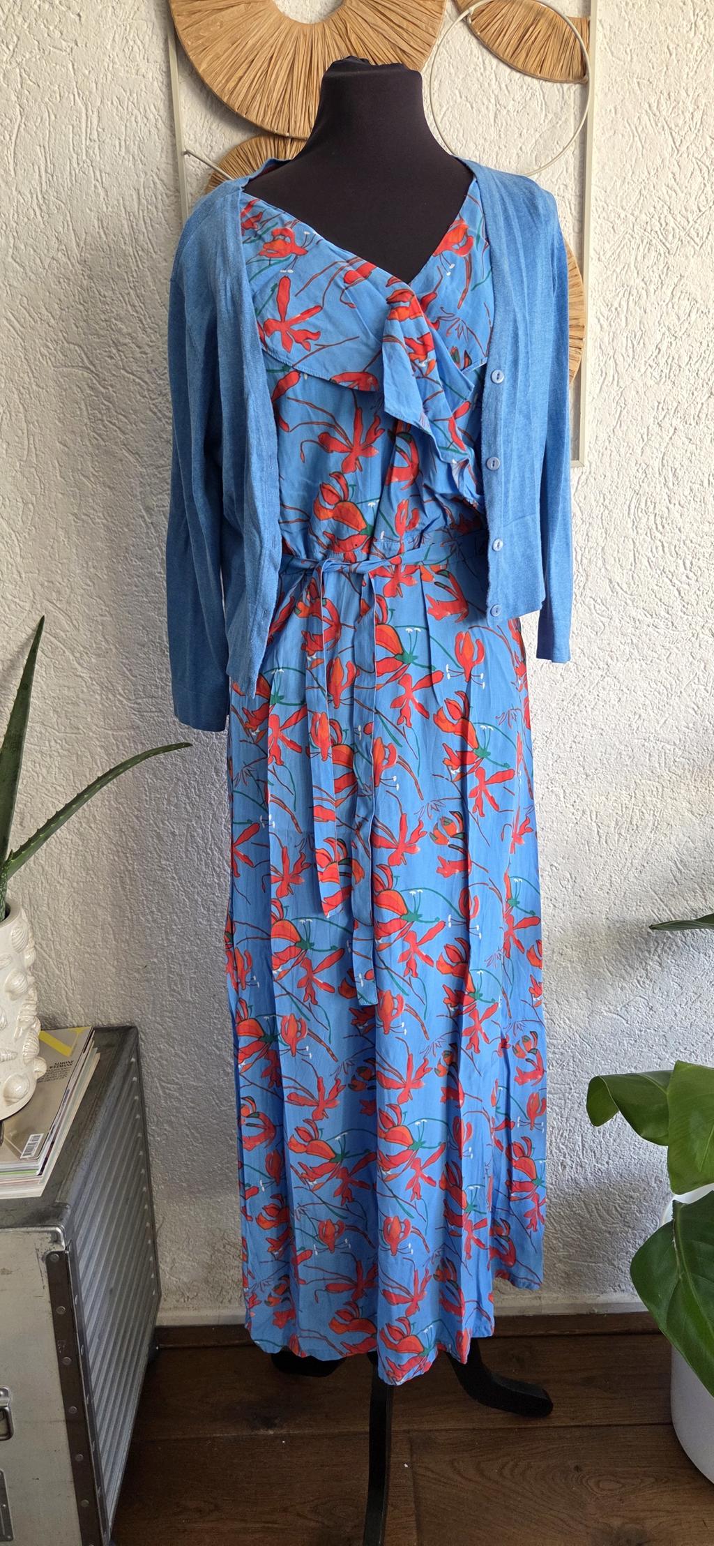 Prachtige set. Lange jurk met bijpassend korter vestje.