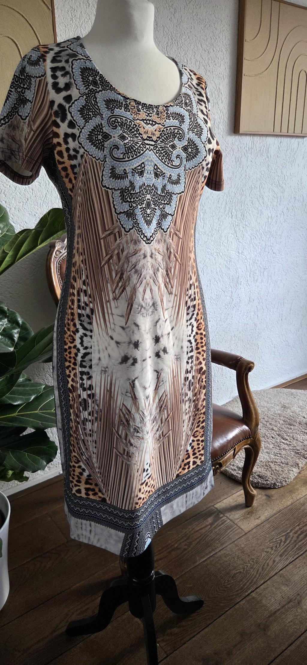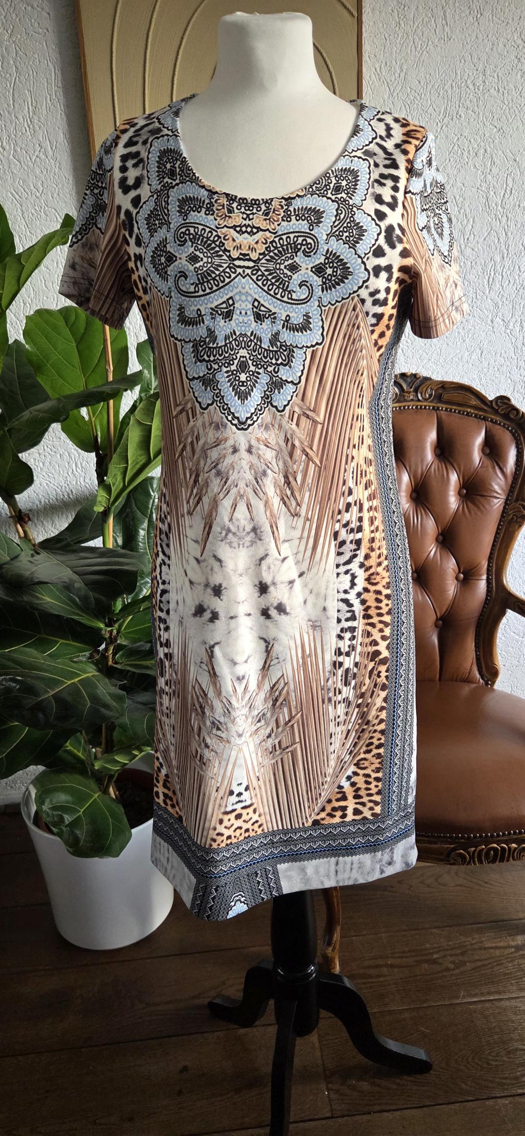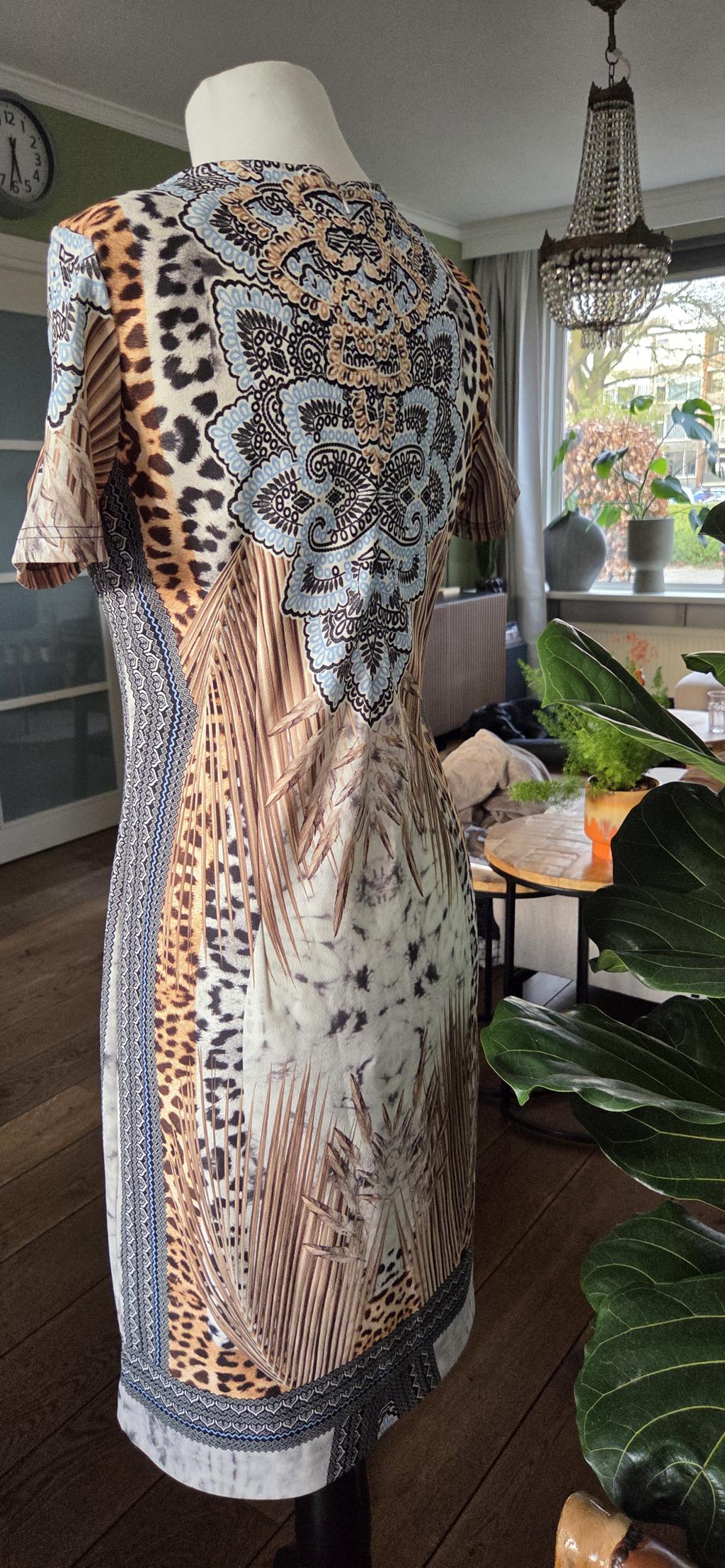 S - Batida jurk beige zwart blauw (0326did) aantal