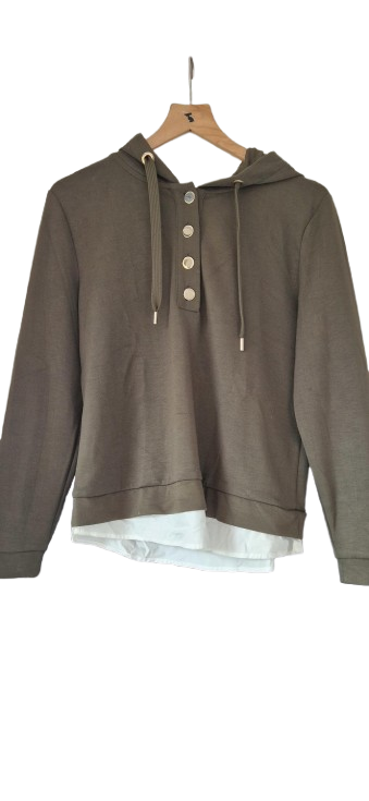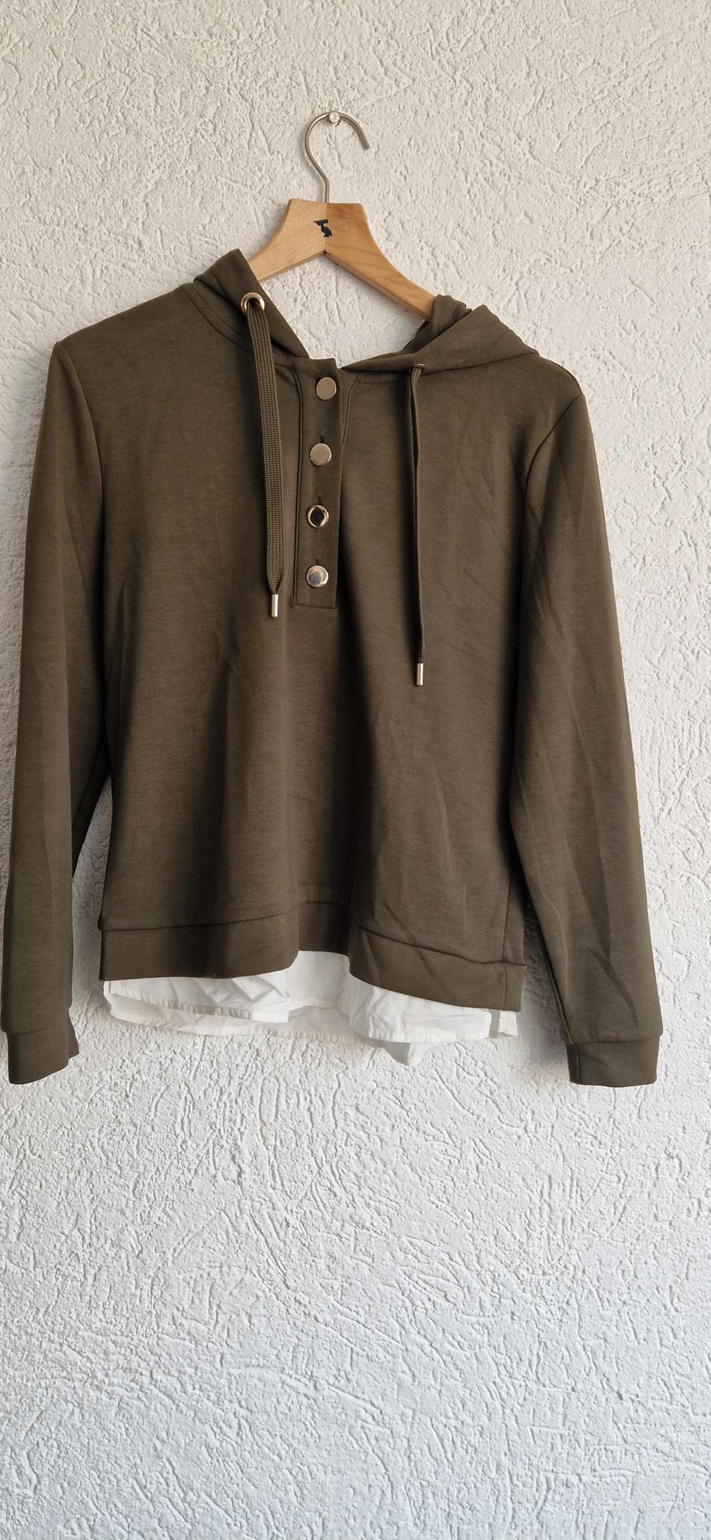 Leuke groene hoodie (niet te dik) met blouse gedeelte.