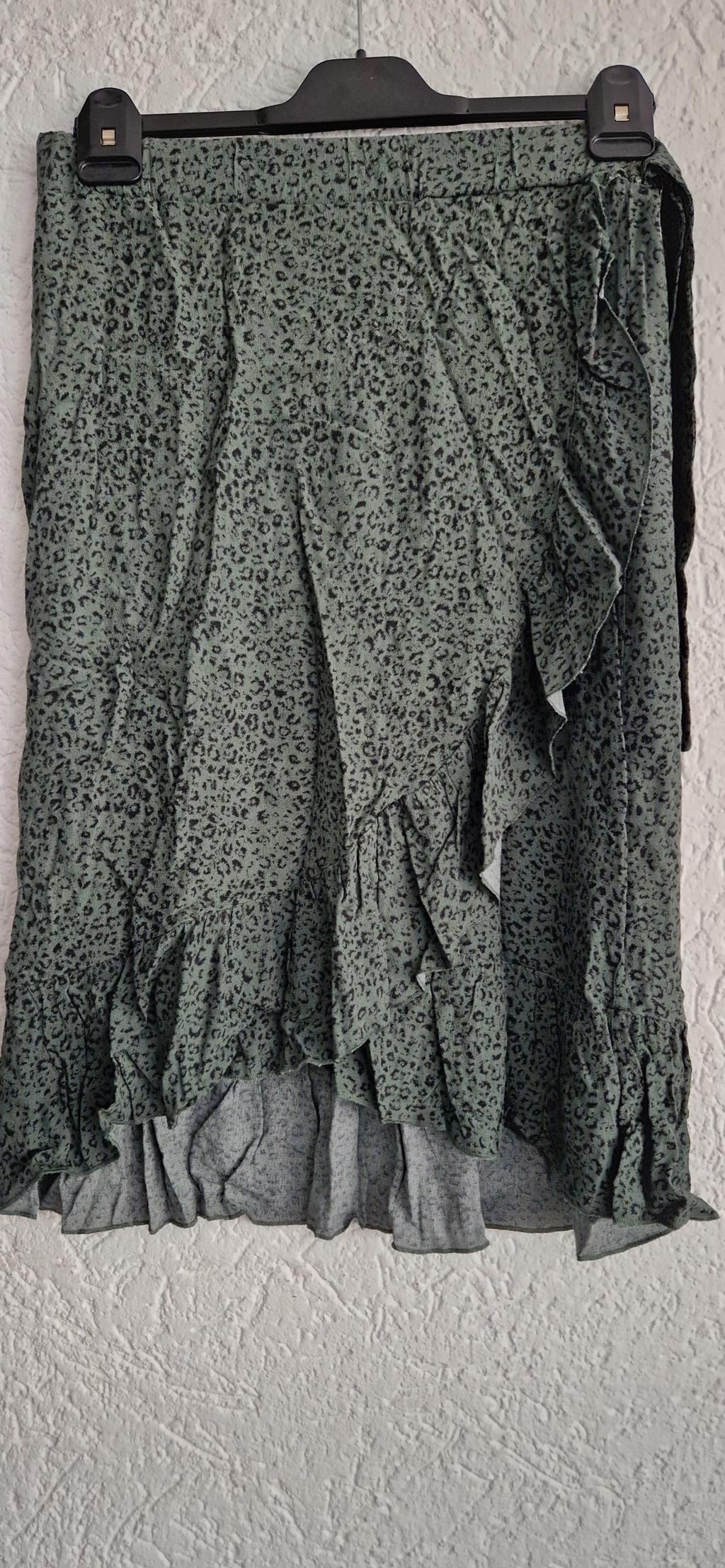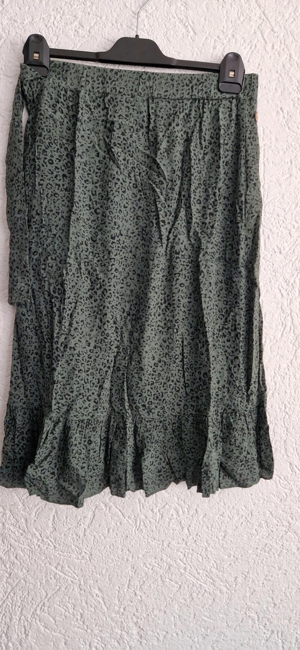 Leuke rok in groen met zwart printje.