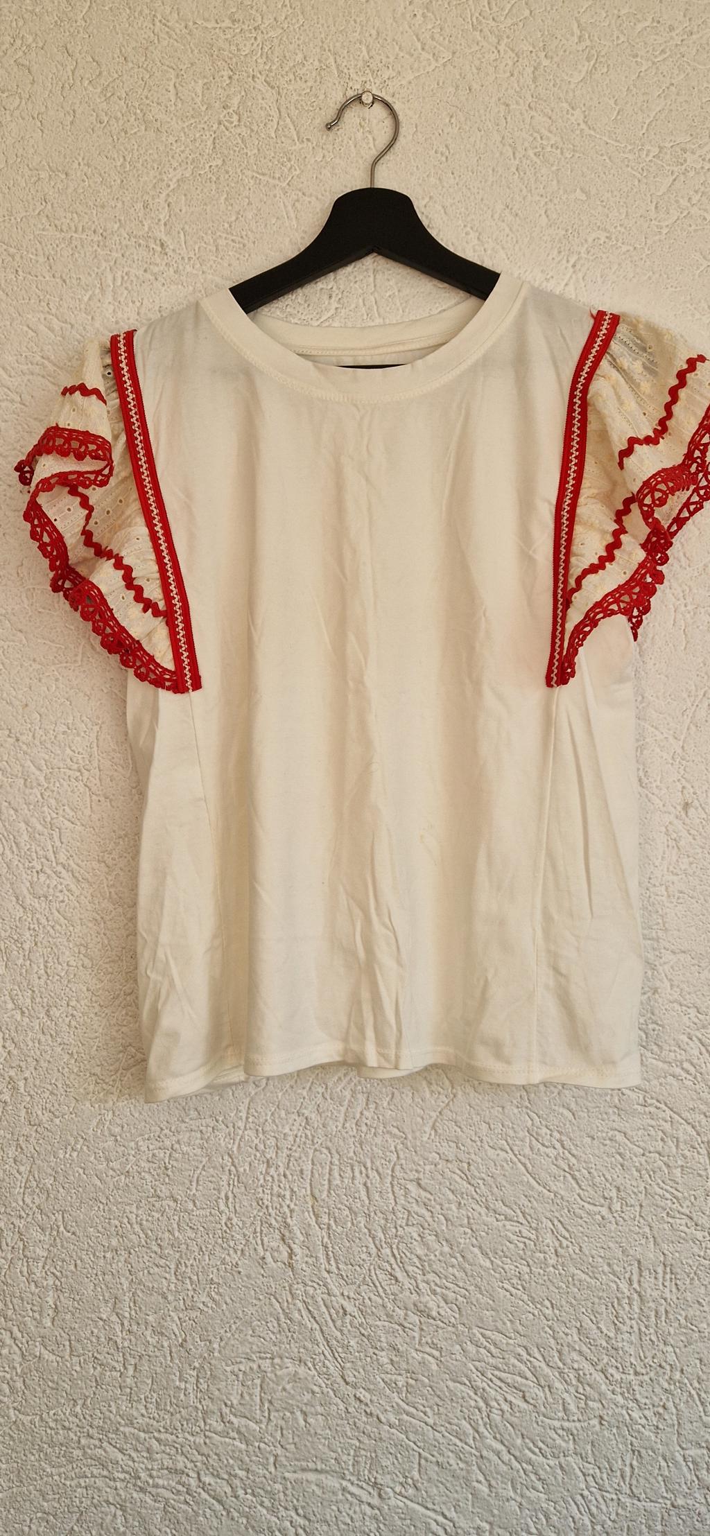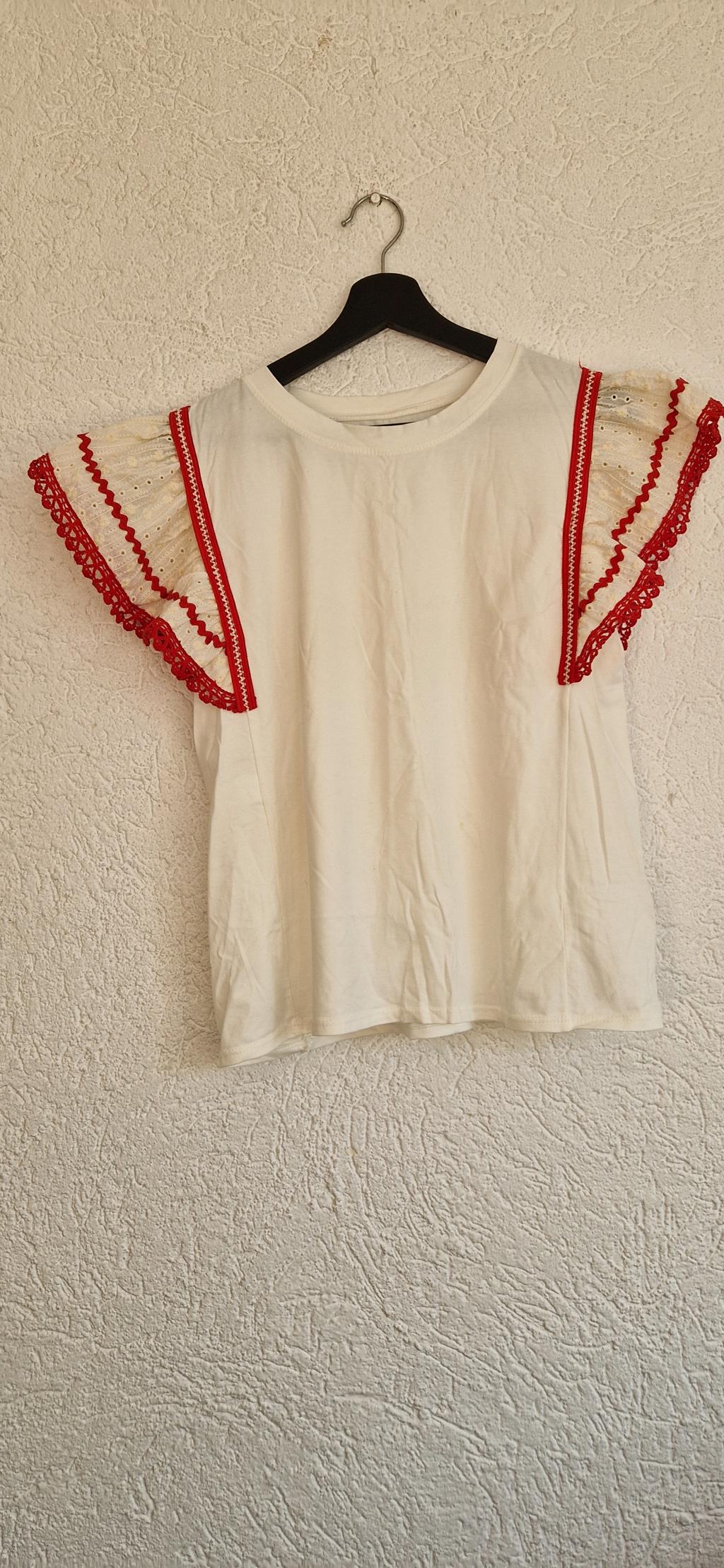 Prachtig shirt in wit met rood detail aan het mouwtje.