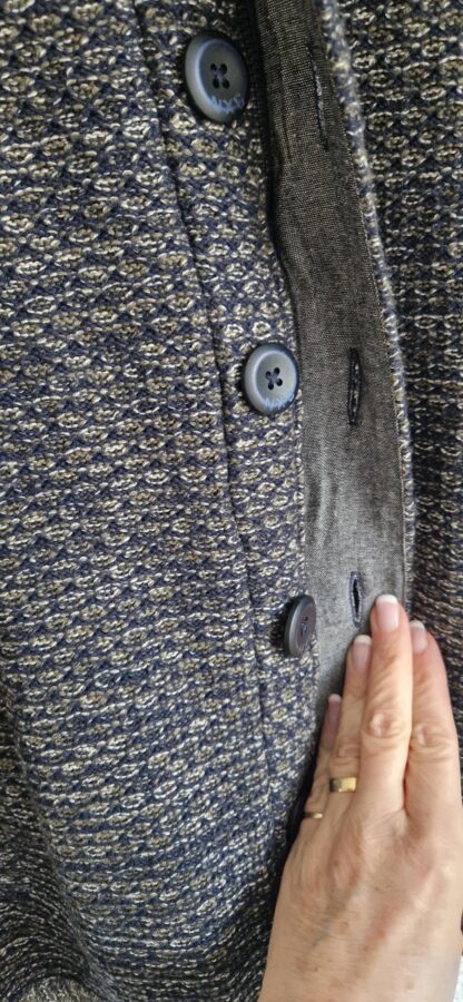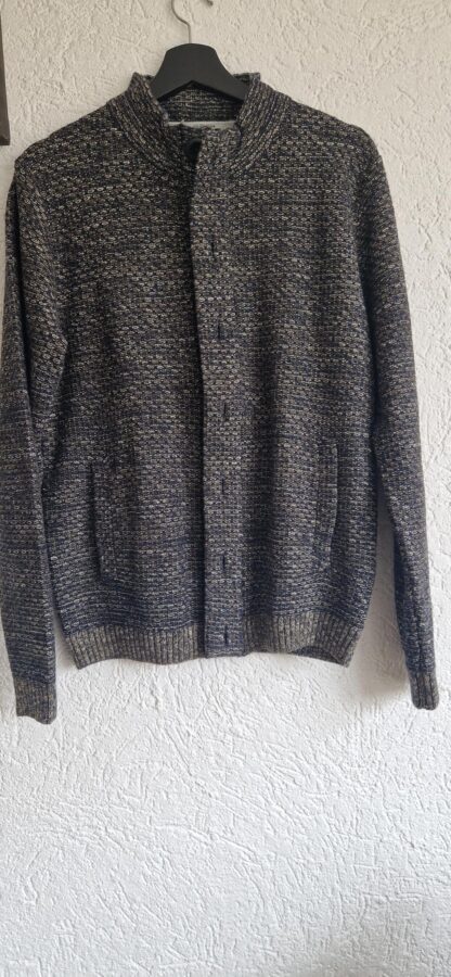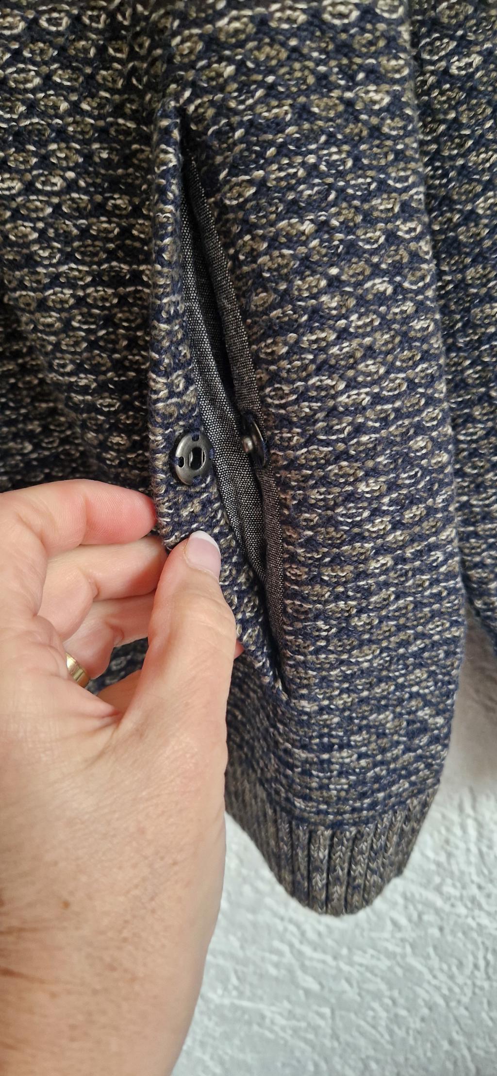 Mooi vest met rits en knopen. Marineblauw, khaki, wit.