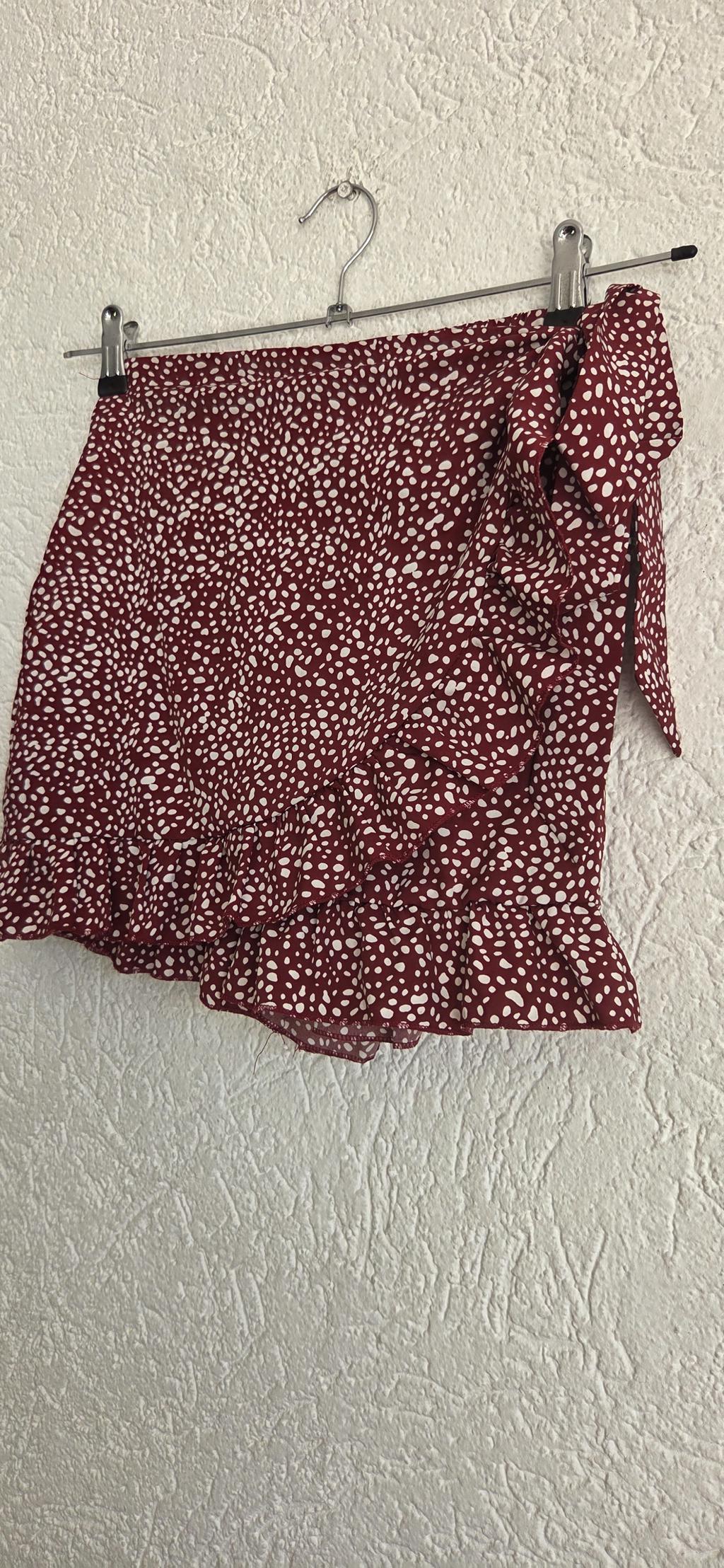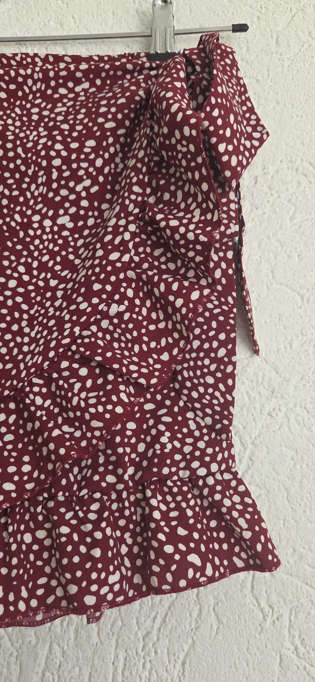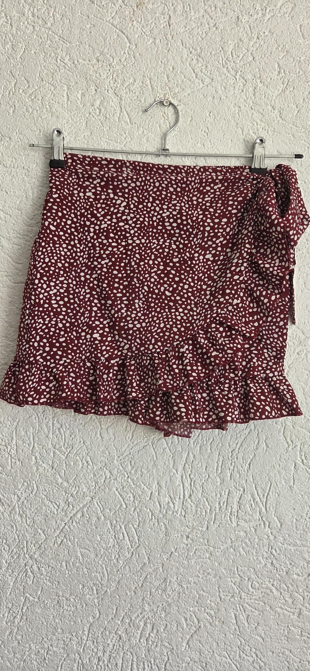 Soepel skort in donkerrood met wit printje.