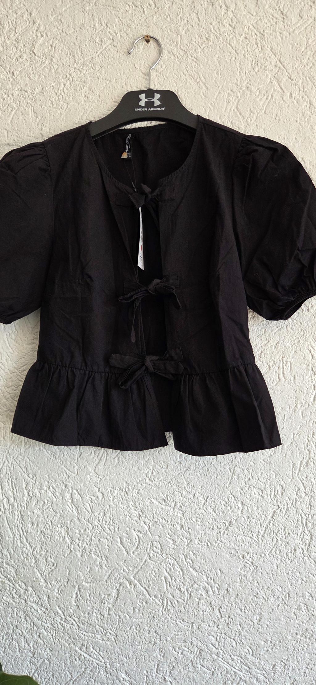 Prachtig blousje in zwart met strikjes.