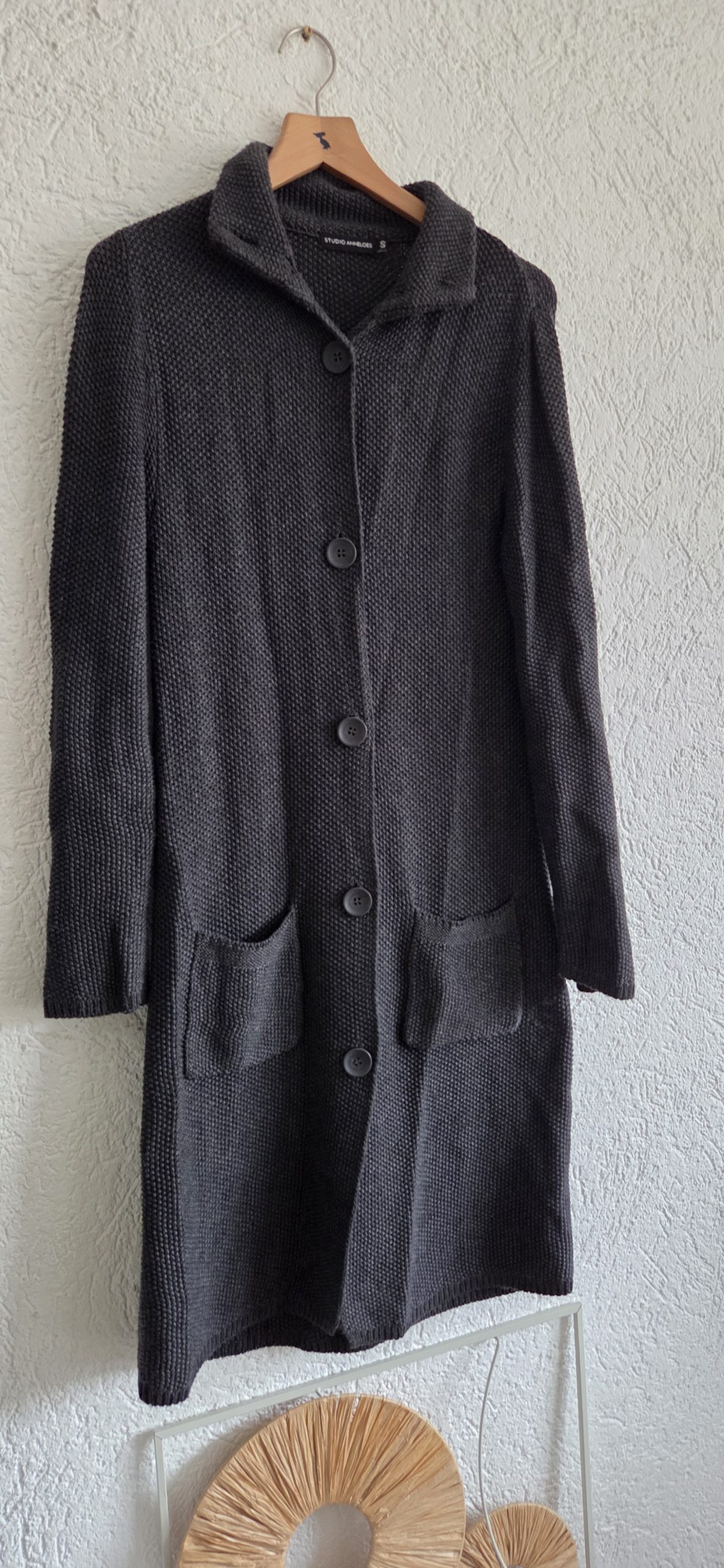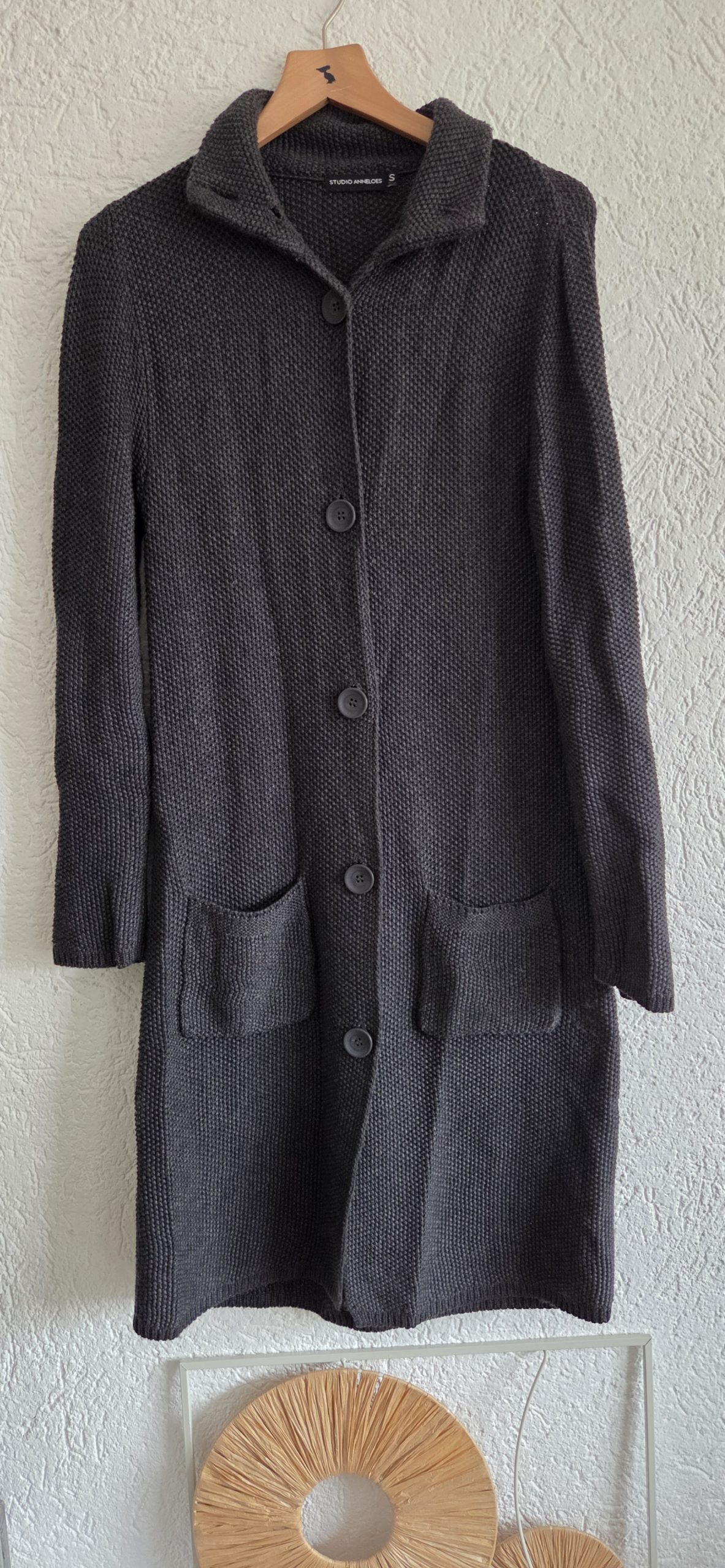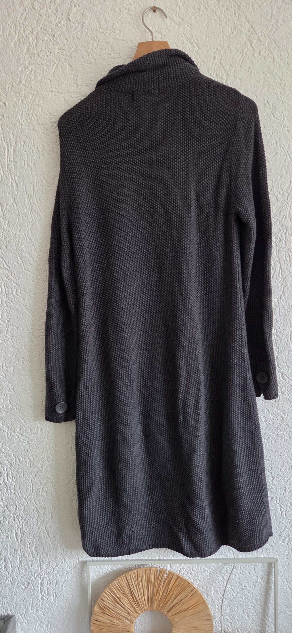 Langer vest met knopen en zakken.