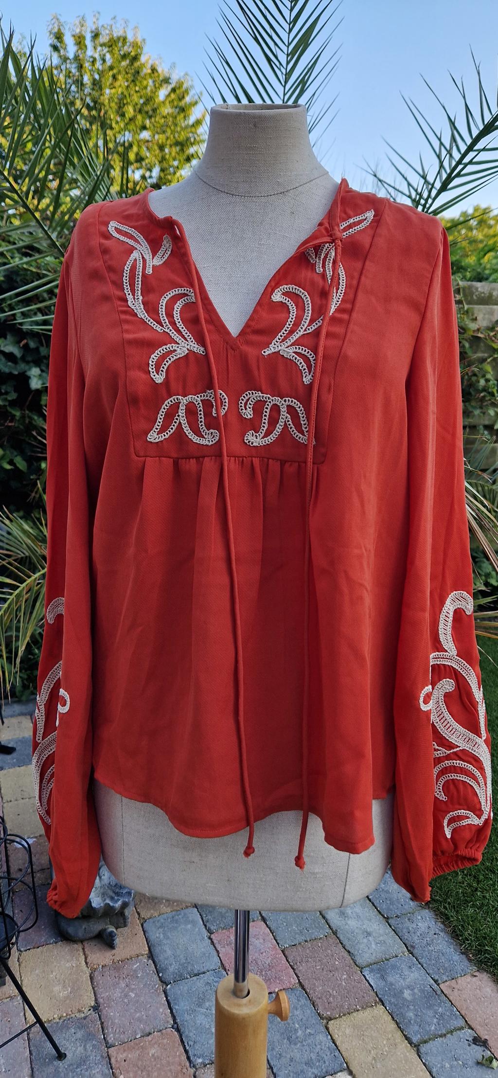 S - Vero Moda top terra met borduursel (1025bak) aantal
