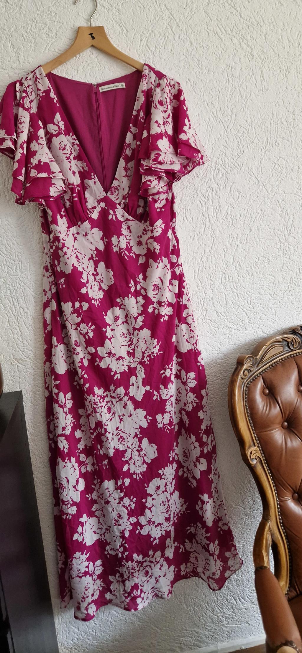 XL – Abercrombie & Fitch jurk fuchsia wit (1025bak)
