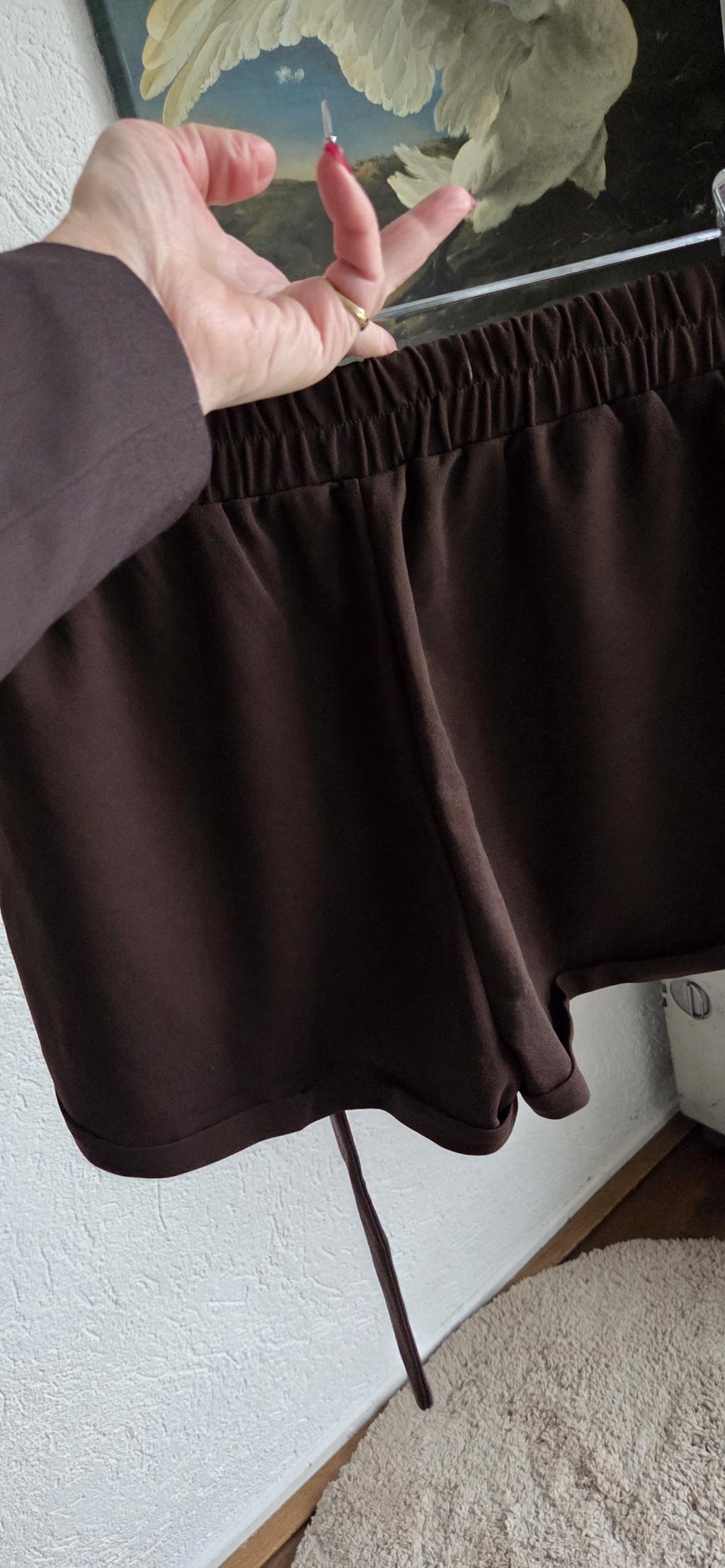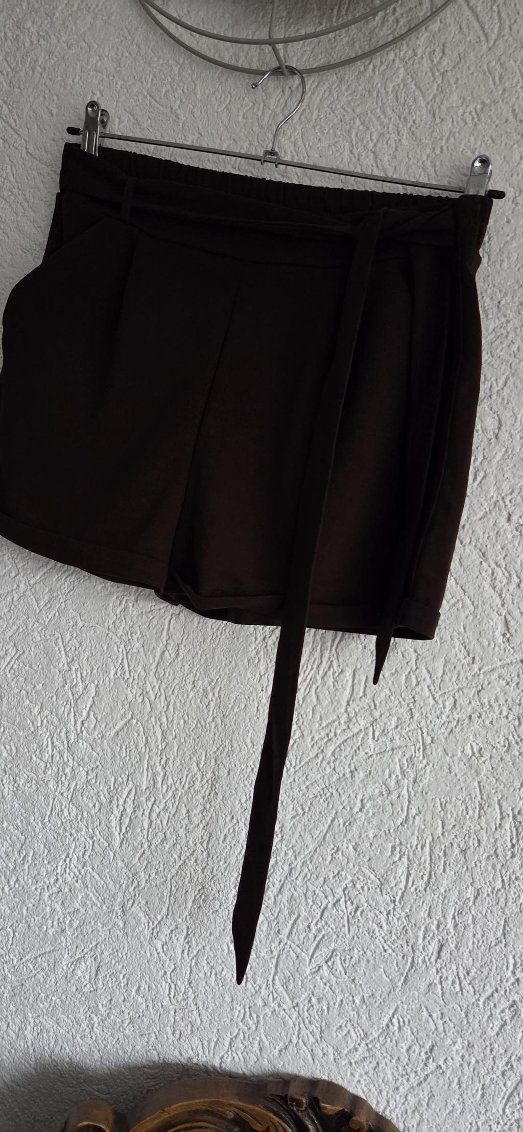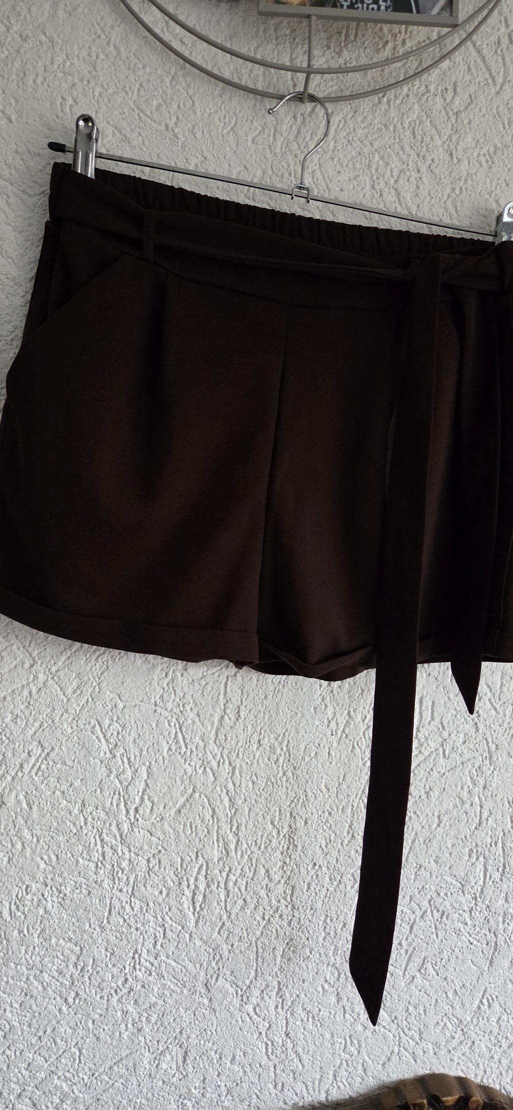 Mooie korte broek in bruin met ceintuur en zakken.