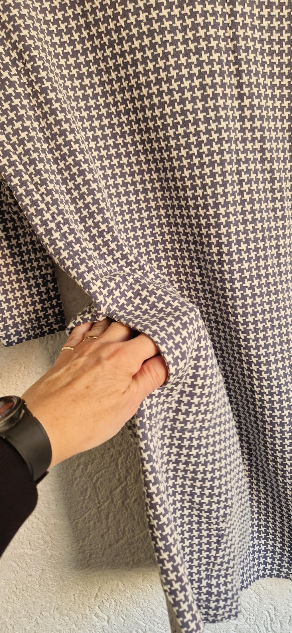 Mooie jurk in een stretchy stof. Fijn dikker materiaal. 3/4 mouw. Met zakken.