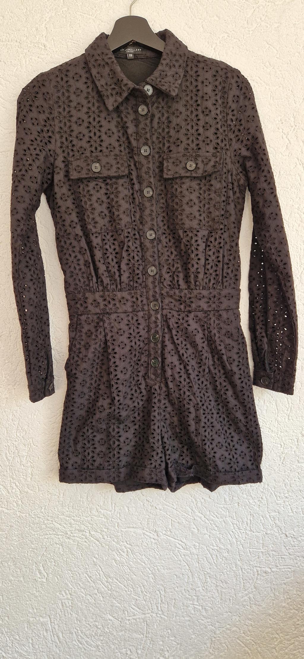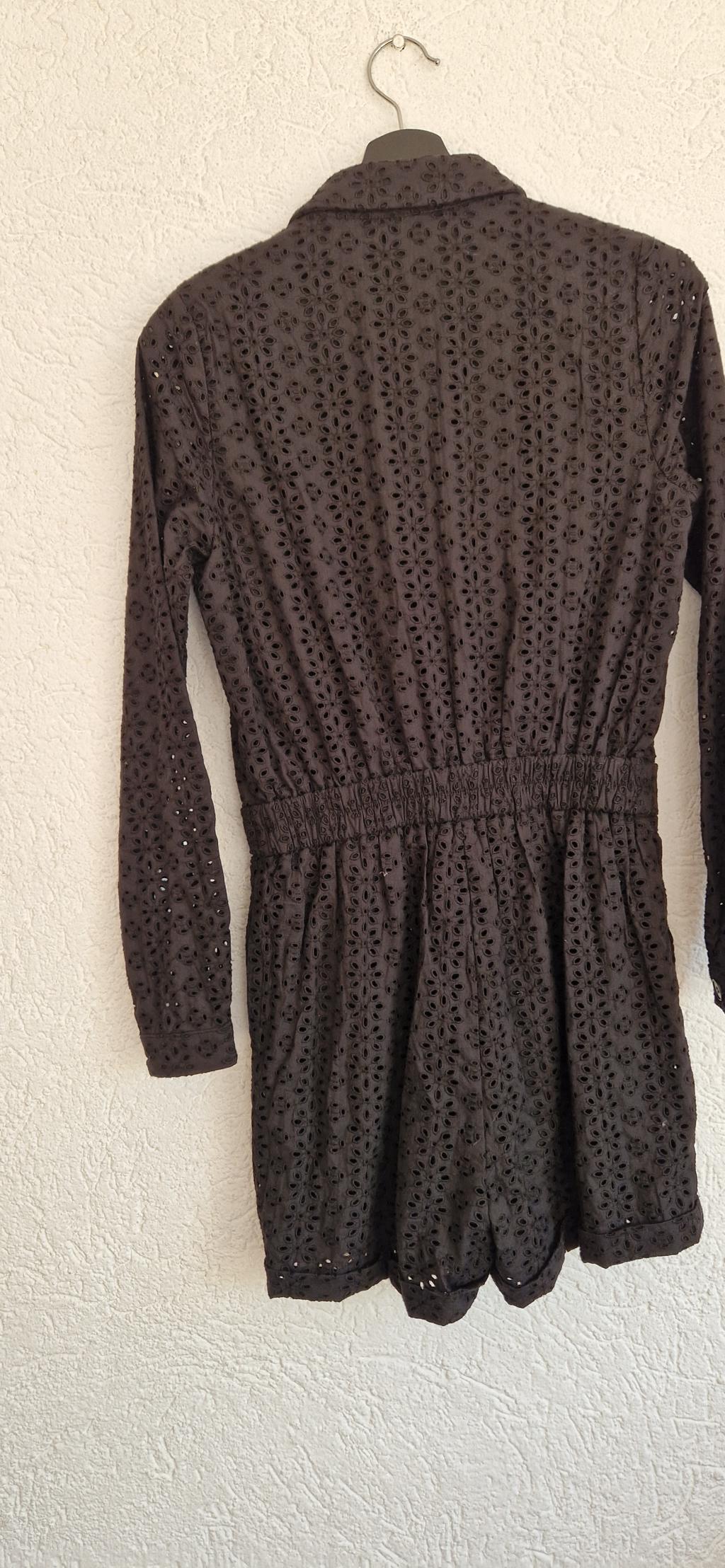 Prachtige playsuit in zwart werkje. Met lange mouw.