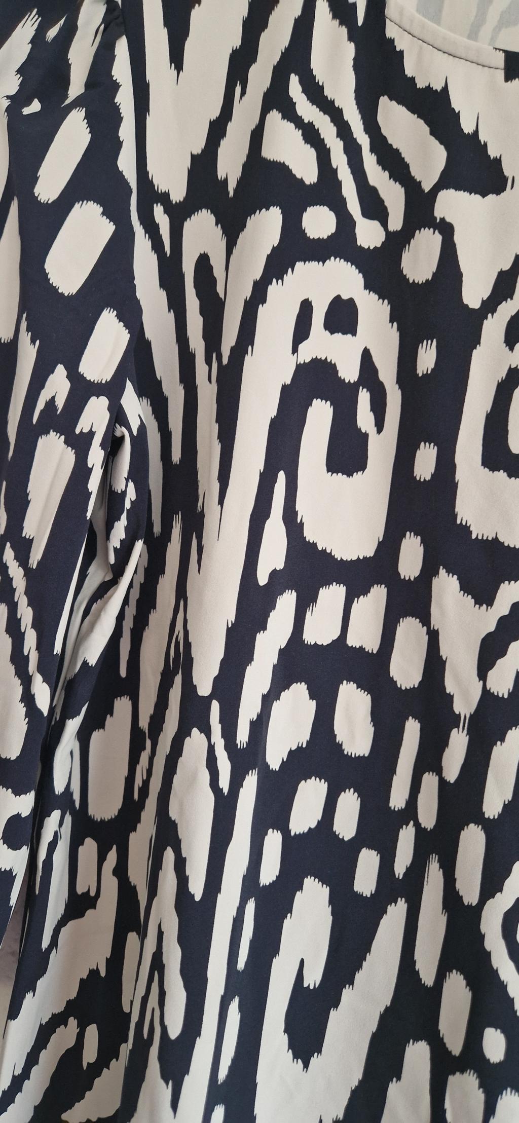 Marineblauw beige patroon. Heerlijk stofje travelstof. Valt ruim voldoende voor een S.